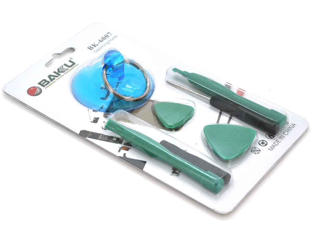 | Набір BAKKU BK-6007 7 в 1 - для виконання ремонтних робіт смартфона, планшета та іншої техніки. Будь-який майстер з ремонту смартфонів, це як хірург на операції, як не крути, а без точних інструментів не обійтись. Для того щоб все пройшло акуратно і безпечно в наборі є ряд інструментів від точних викруток до екранної присоски, які допоможуть підняти скло, розібрати корпус та ін. У наборі: • викрутки (Т4, Т5) -2 шт • присоска – 1 шт. • лопатки – 2 шт. • шпателя – 2 шт. Характеристики: • матеріал – пластик / метал • упаковка – коробка • кількість в упаковці – 7 шт. • упаковка – блістер |