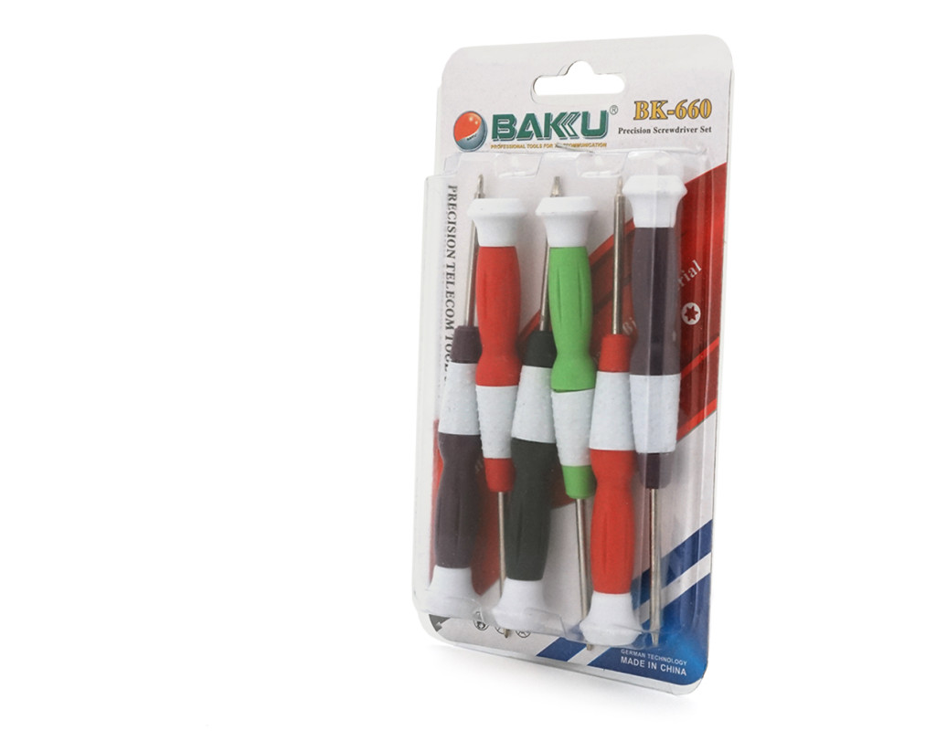| Набір викруток BAKKU BK-660 - необхідна річ у кожен будинок та майстерню. У наборі є все необхідне для розбору корпусу та ремонту смартфонів, планшетів, ноутбуків, побутових пристроїв та інших потреб. У наборі: • T5x45mm, • T6x45mm, • - 1.5x45mm, • + 00x45mm, • Y-подібна викрутка 00x45mm, • зірочка 0.8x45mm. Характеристики: • матеріал рукоятки – пластик • матеріал наконечника - сталь • упаковка - блістер / коробка • кількість в упаковці – 6 шт. |