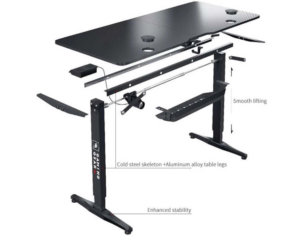 Тип - геймерський, підставка для навушників, кабель-менеджмент, підсклянник, Матеріал - МДФ, пластик, Ширина - 160 см, Глибина - 60 см, Колір - чорний, Вага - 26.3 кг