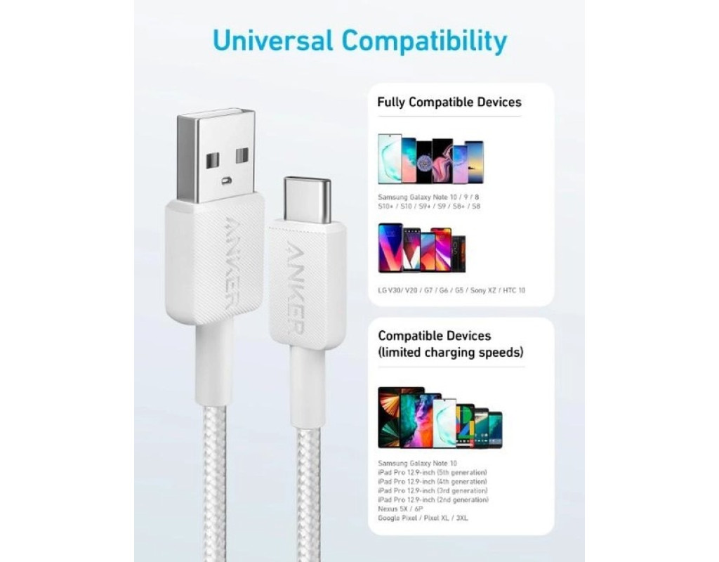 Роз’єм виходу: USB Type-C Довжина кабелю: 0.9 м Надійне заряджання Сертифікований кабель для безпечного та надійного заряджання практично будь-якого пристрою USB-C (Несумісний із Power Delivery). Створений бути витривалим Підтверджено суворими лабораторними тестами, що витримує до 10 000 згинань. Швидка синхронізація та зарядка Підтримує швидку зарядку з струмом до 3 A і швидкість передачі даних до 480 Мбіт/с. |