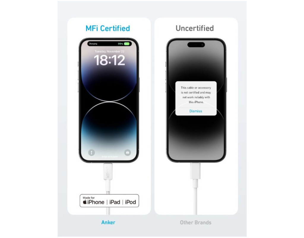Цей зарядний кабель для iPhone сертифікований MFi для бездоганної сумісності з пристроями Lightning, забезпечуючи безпечну та надійну зарядку — щоразу.