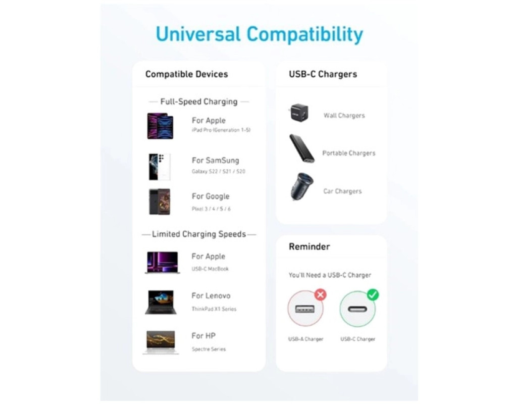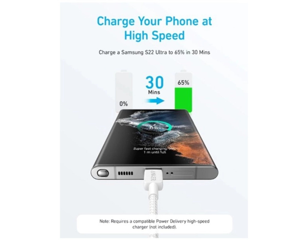 Сертифікований кабель для безпечного та надійного заряджання практично будь-якого пристрою USB-C.