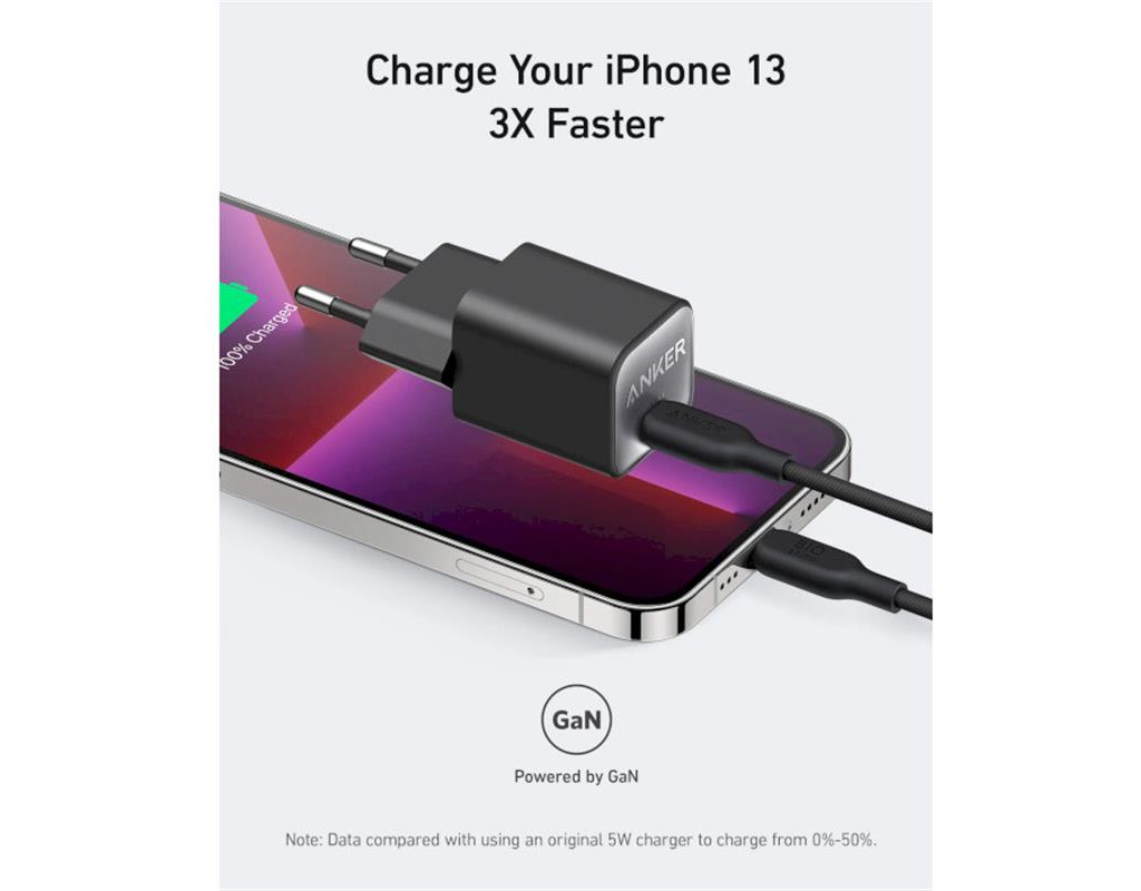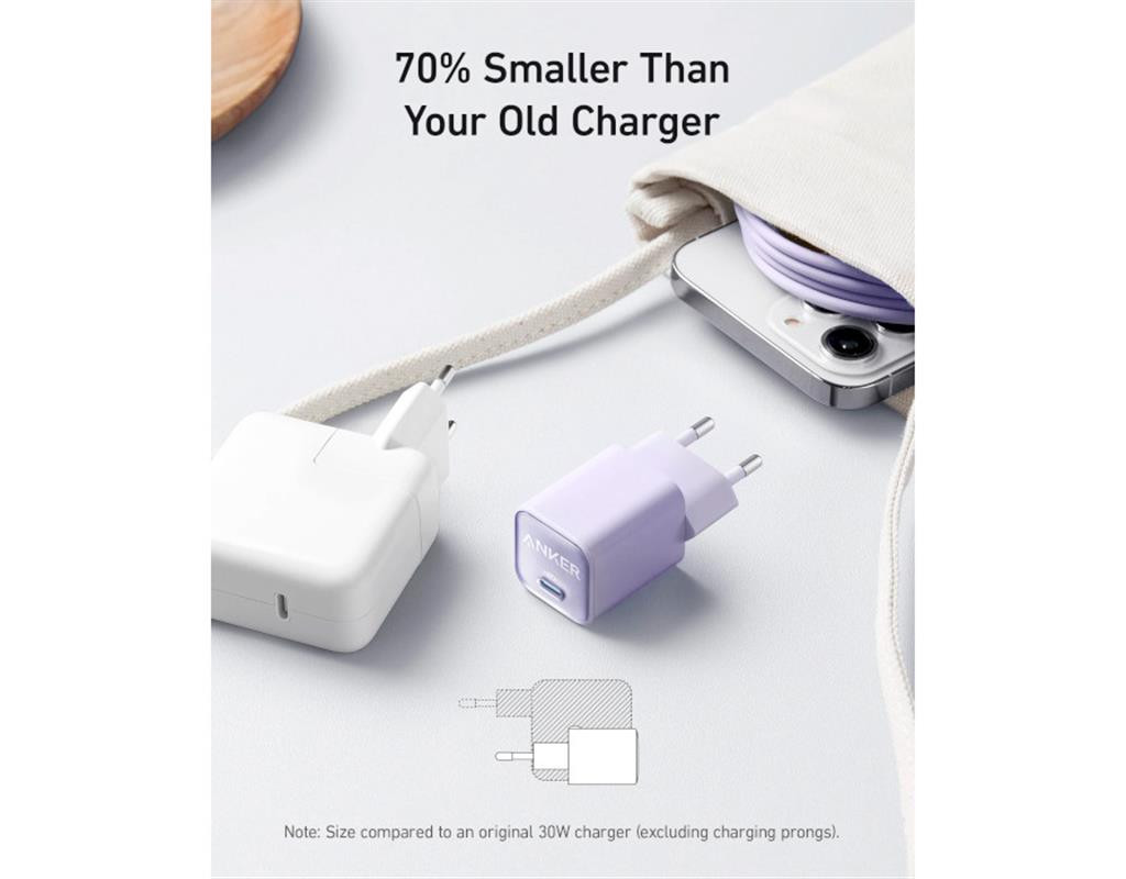 | Anker PowerPort 511 Nano III Nano III GaN 30W маленький, але потужний: замінивши кремній на GaN, ми змогли вмістити 30 Вт потужності в зарядний пристрій завтовшки всього 2,84 см, що на 70% менше, ніж в оригінального 30-ватного зарядного пристрою.