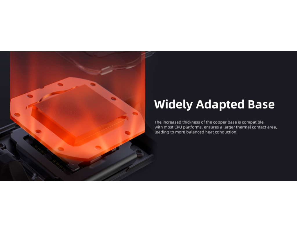 Для процесорів - INTEL, AMD, сокет - 1156, 2011, AM4, AM5, 1150, 1151, 1155, 1200, 1700, 2011-3, 2066, діаметр вентиляторів - 120 мм, Підсвічування - ARGB, 150 Вт, 1800 об/хв, матеріал радіатора - алюміній + мідь, Тип підшипників - гідродинамічний (FDB Bearing), рівень шуму - 35.2 dB, роз'єми живлення - 4-pin PWM, 4-pin (помпа), 3-pin, чорний