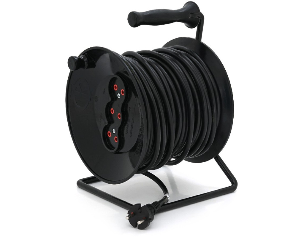 | Подовжувач на котушці RITAR VN 25м (ПВС 2*1,5), 3 гнізда без контакту, контактна група - латунь, до 3кВт |