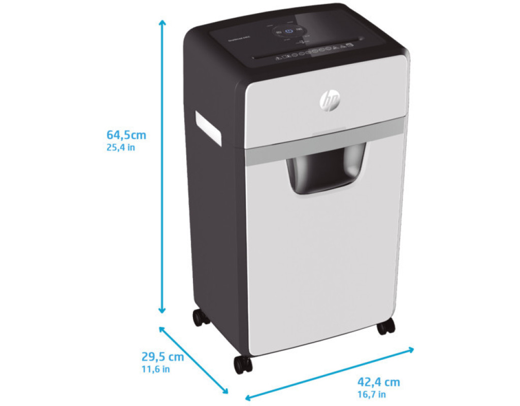 Знищувач документів HP Shredder 24CC із пониженим, порівняно з іншими моделями цього класу, рівнем робочого шуму – це чудове рішення для використання в open-space офісах. Високий рівень безпеки P-4 згідно DIN 66399 відповідає вимогам Загального регламенту захисту даних (DSGVO), тому гарантує повну безпеку конфіденційних даних. Знищуйте шредером документи, які містять комерційну таємницю або персональну інформацію, відомості про зарплату, бухгалтерську та податкову звітність тощо. Він одночасно подрібнить до 24 аркушів формату А4 (80 г/м²) та без проблем впорається з скріпками, скобами та кредитними картками. Шредер ріже документи перехресним зрізом на частинки розміром 4х35 мм зі швидкістю 1,6 м/хв. Знищувач документів HP Shredder 24CC оснащений індикаторами перегріву та перевантаження. Функція авто-реверсу протидіє застряганню аркушів – якщо ви випадково поклали більше аркушів, зайві аркуші автоматично подаються назад. Безперервний час роботи шредера – 30 хв, час охолодження – 50 хв. Оглядове вікно, розташоване у передній частині кошика для відходів, дозволяє легко контролювати рівень його заповнення та вчасно очищати від відрізків. Чотири коліщатка, два з яких можна зафіксувати, роблять шредер мобільним та зручним у користуванні. |