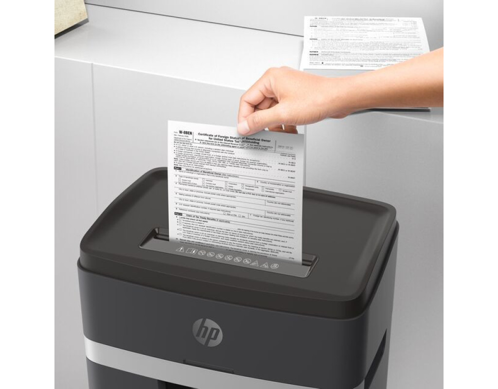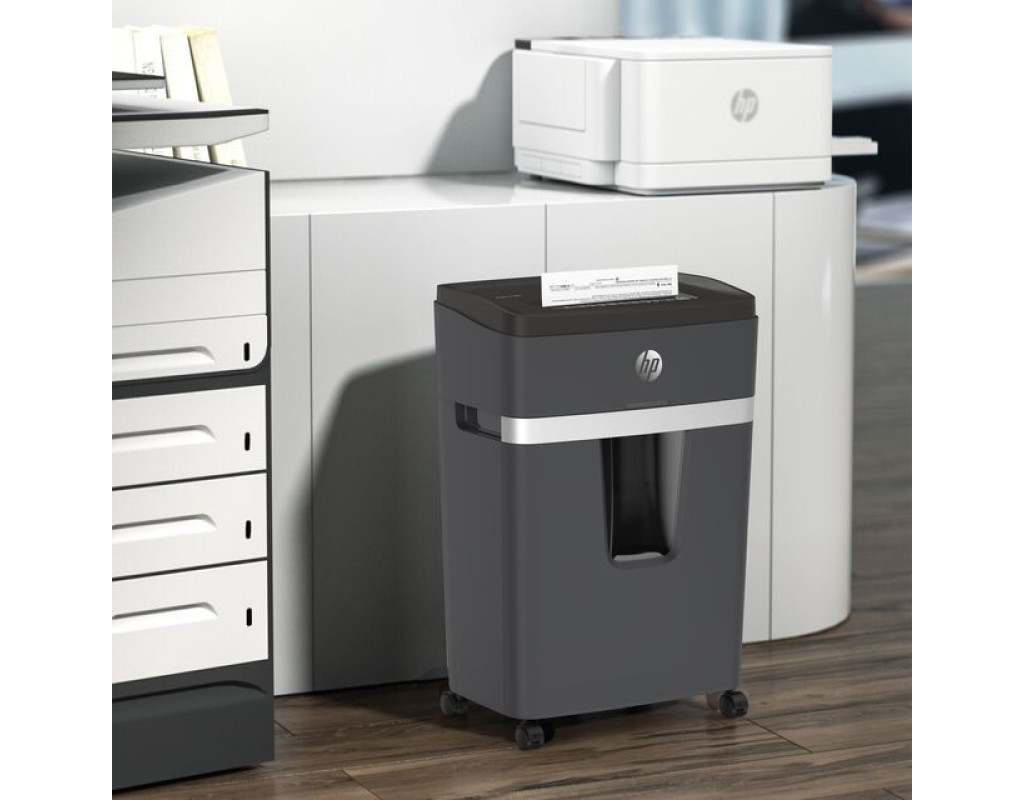 Знищувач документів HP Shredder Pro 12МC із пониженим, порівняно з іншими моделями цього класу, рівнем робочого шуму – це чудове рішення для використання в невеликих офісах, медичних закладах, юридичних фірмах тощо. Високий рівень безпеки P-5 згідно DIN 66399 відповідає вимогам Загального регламенту захисту даних (DSGVO), тому гарантує повну безпеку конфіденційних даних. Знищуйте шредером документи, які містять комерційну таємницю або персональну інформацію. Він одночасно подрібнить до 12 аркушів формату А4 (80 г/м²) та без проблем впорається з скріпками, скобами та кредитними картками. Шредер ріже документи мікрозрізом на частинки розміром 2х15 мм зі швидкістю 1,6 м/хв. Знищувач документів HP Shredder Pro 12МC оснащений індикаторами перегріву та перевантаження. Функція авто-реверсу протидіє застряганню аркушів – якщо ви випадково поклали більше аркушів, зайві аркуші автоматично подаються назад. Безперервний час роботи шредера – 30 хв, час охолодження – 50 хв. Оглядове вікно, розташоване у передній частині кошика для відходів, дозволяє легко контролювати рівень його заповнення та вчасно очищати від відрізків. Чотири коліщатка роблять шредер мобільним та зручним у користуванні. |