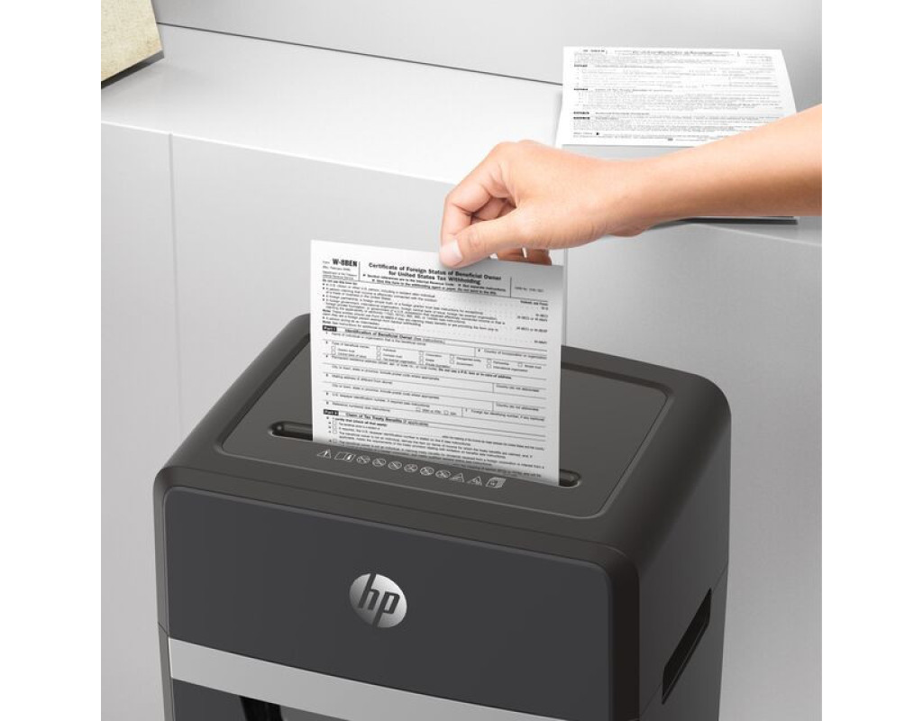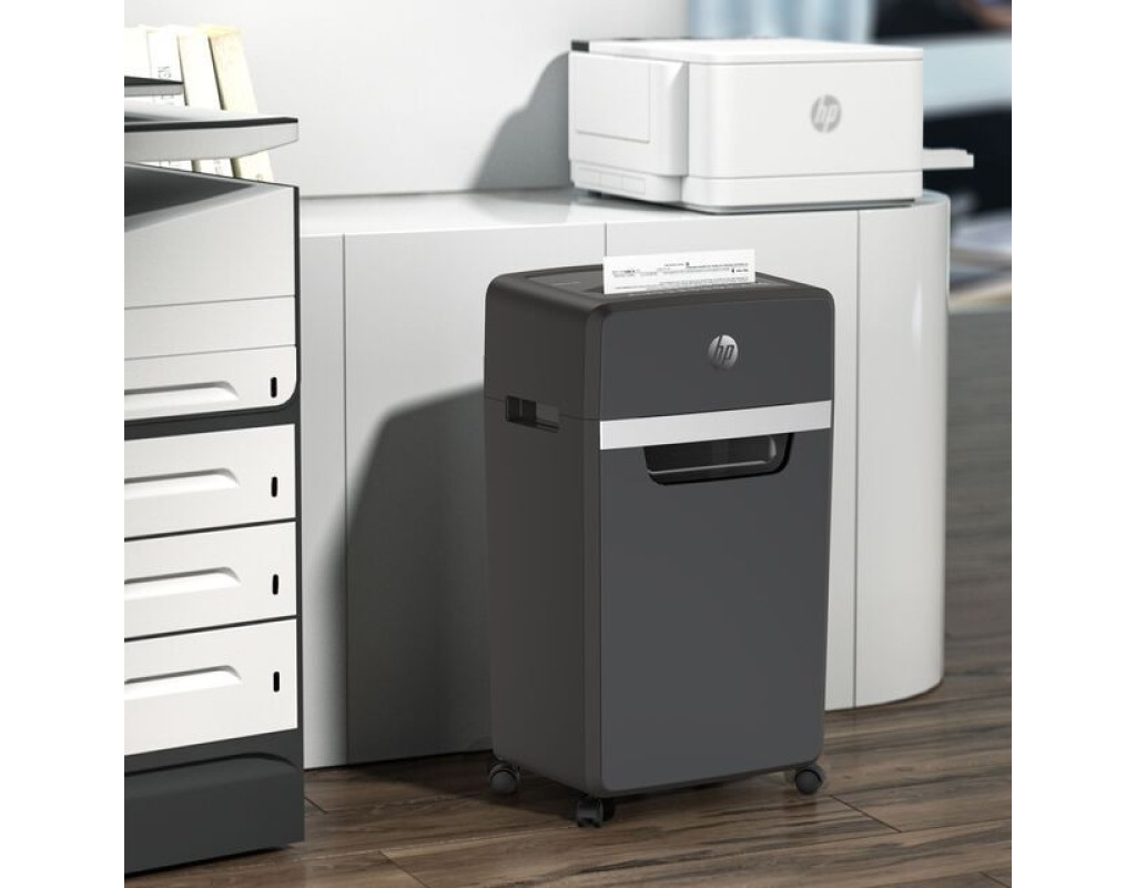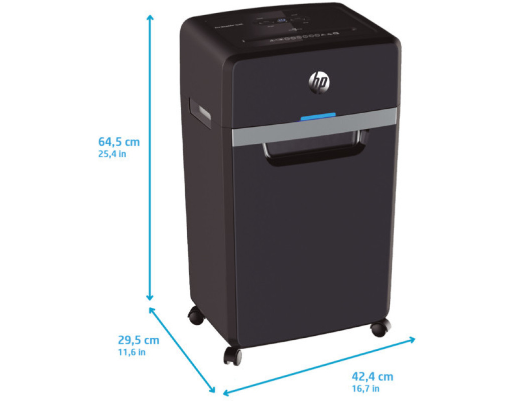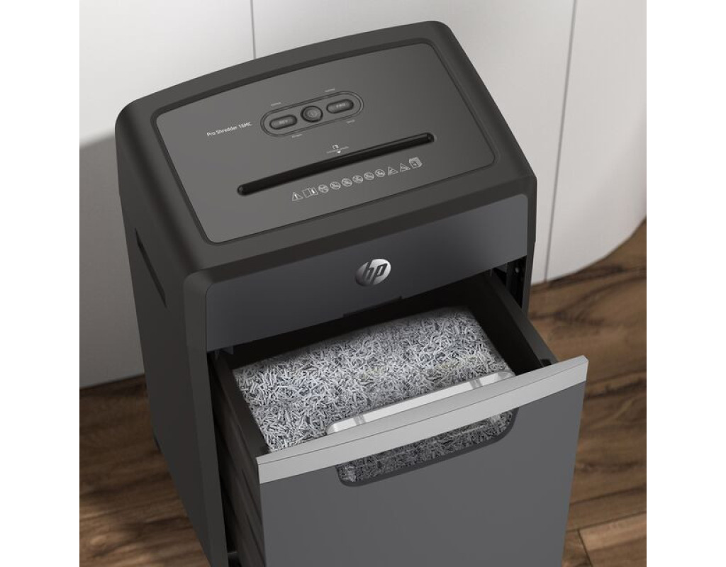 Знищувач документів HP Shredder Pro 16МC із пониженим, порівняно з іншими моделями цього класу, рівнем робочого шуму – це чудове рішення для використання в невеликих офісах, медичних закладах, юридичних фірмах тощо. Високий рівень безпеки P-5 згідно DIN 66399 відповідає вимогам Загального регламенту захисту даних (DSGVO), тому гарантує повну безпеку конфіденційних даних. Знищуйте шредером документи, які містять комерційну таємницю або персональну інформацію. Він одночасно подрібнить до 16 аркушів формату А4 (80 г/м²) та без проблем впорається з скріпками, скобами та кредитними картками. Шредер ріже документи мікрозрізом на частинки розміром 2х15 мм зі швидкістю 1,6 м/хв. Знищувач документів HP Shredder Pro 16МC оснащений індикаторами перегріву та перевантаження. Функція авто-реверсу протидіє застряганню аркушів – якщо ви випадково поклали більше аркушів, зайві аркуші автоматично подаються назад. Безперервний час роботи шредера – 40 хв, час охолодження – 50 хв. Оглядове вікно, розташоване у передній частині кошика для відходів, дозволяє легко контролювати рівень його заповнення та вчасно очищати від відрізків. Чотири коліщатка, два з яких можна зафіксувати, роблять шредер мобільним та зручним у користуванні. |