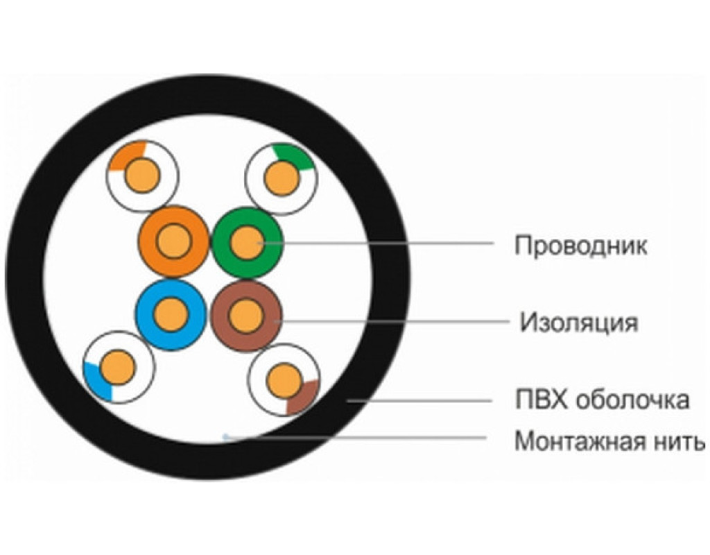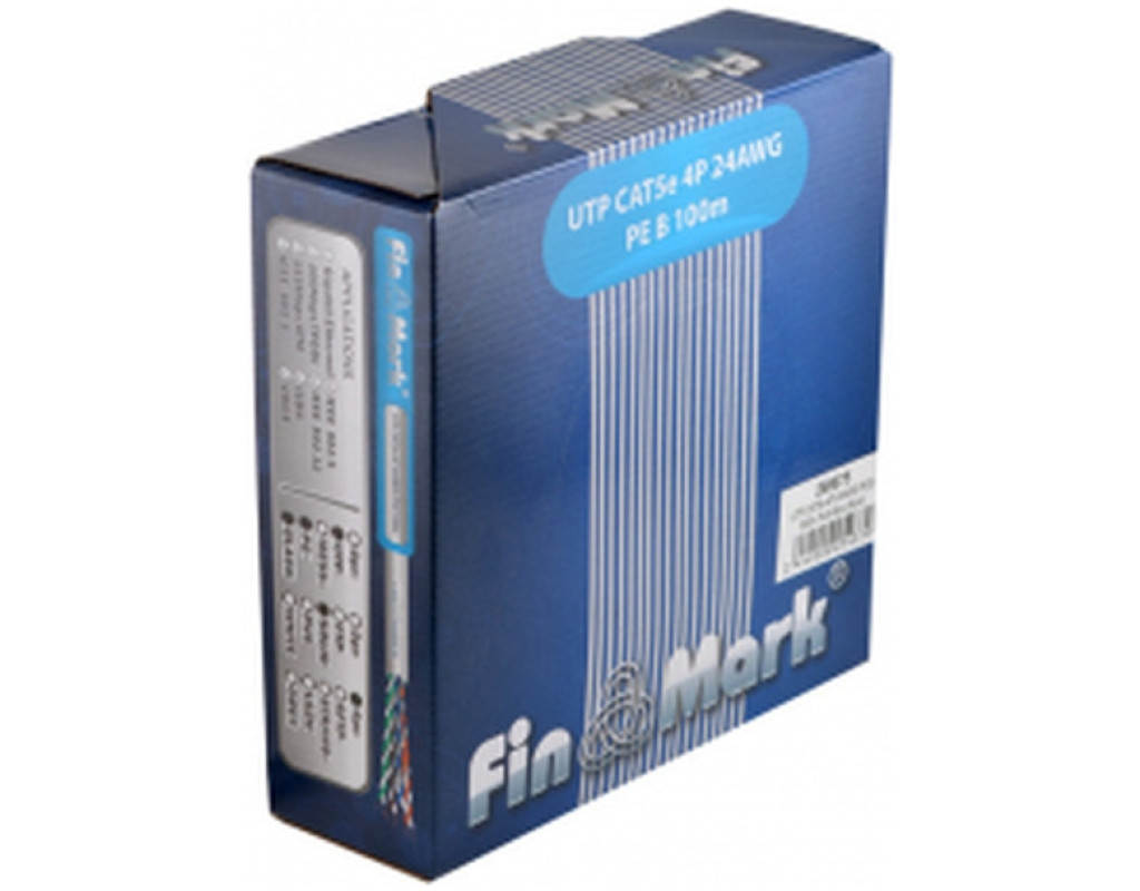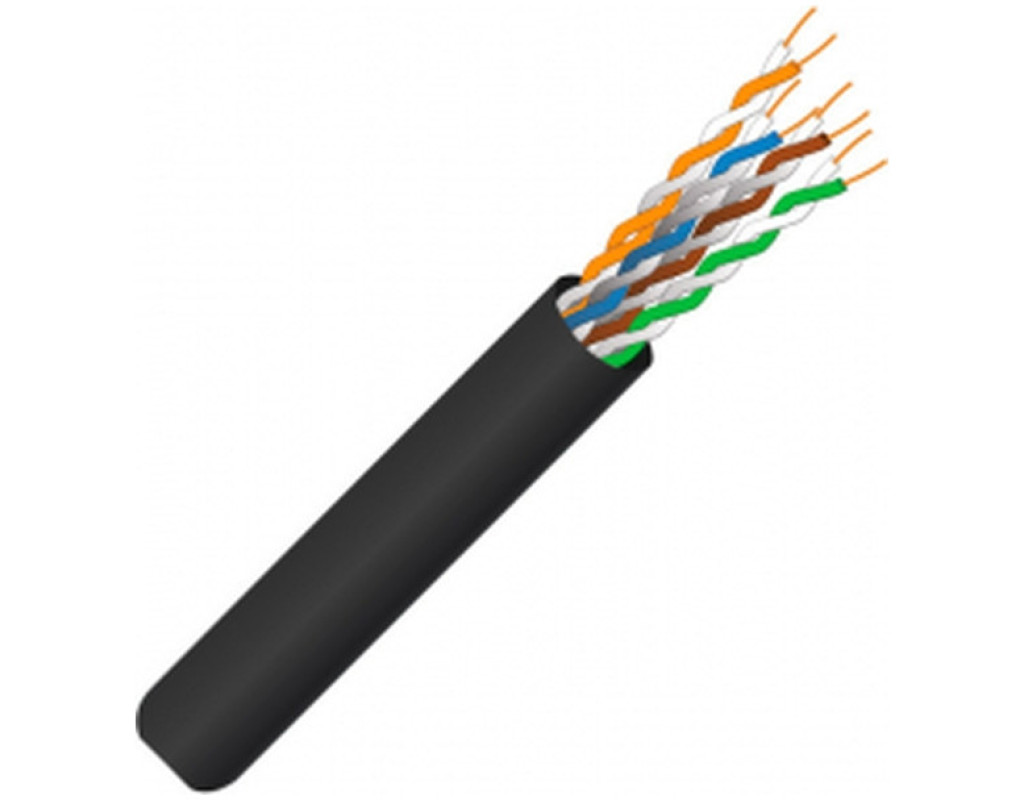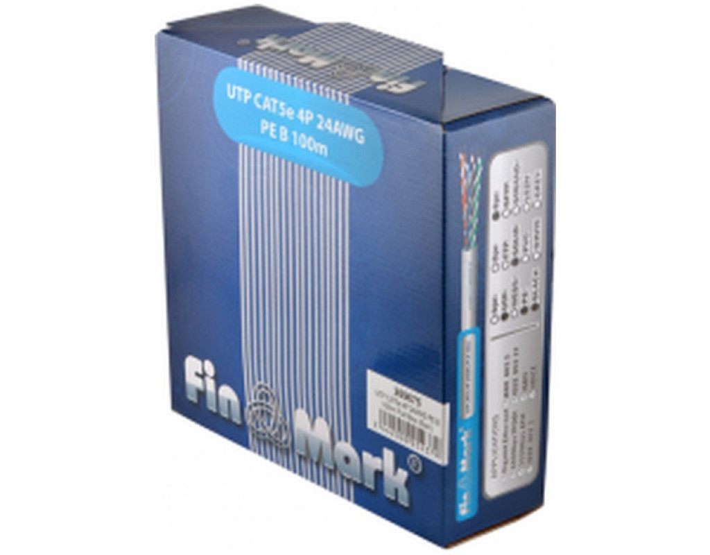 Кабель FinMark UTP CAT 5e 4P 24AWG 100 м зовнішній призначений для передавання сигналів Ethernet (100 Мбіт/с, 1 Гбіт/с) або іншого передавання даних під час прокладення в кабельній каналізації, колекторах, шахтах, стінами будівель. Оболонка кабелю виконана з УФ-стабілізованого поліетилену чорного кольору. Номінальний зовнішній діаметр кабелю 5,3 мм. У кабелі застосовано загальноприйняту колірну ідентифікацію провідників: