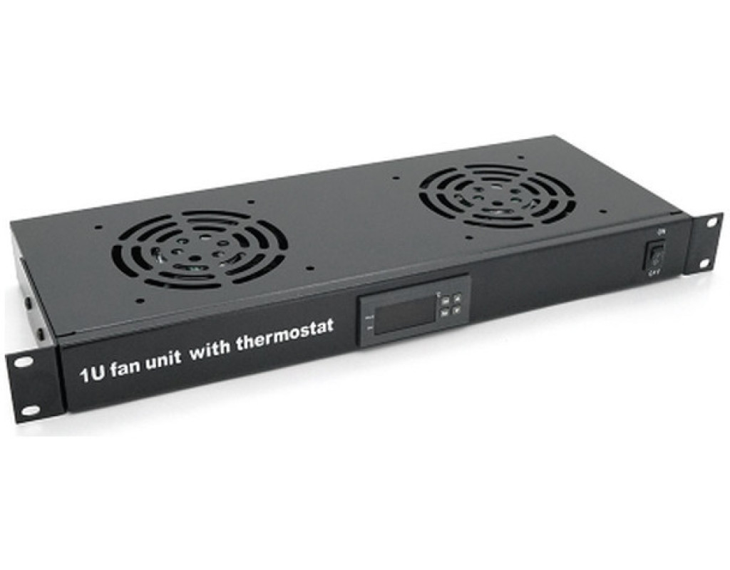 19" вентиляторний модуль Merlion, 2 вентилятори з цифровим термостатом та 1*Shuko, чорний |