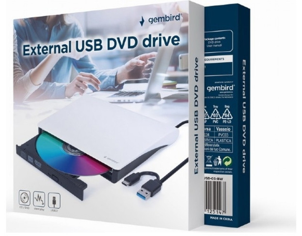 Зовнішній CD/DVD-рідер/рекордер з інтерфейсом USB. Забезпечує швидкий запис CD/DVD-носіїв зі швидкістю запису 24x для CD і 8x для DVD. Високошвидкісний інтерфейс USB 3.1 для надійного використання з високою швидкістю передачі даних. Безшумне відтворення: інтелектуальне керування швидкістю читання дисків знижує рівень шуму під час роботи. |