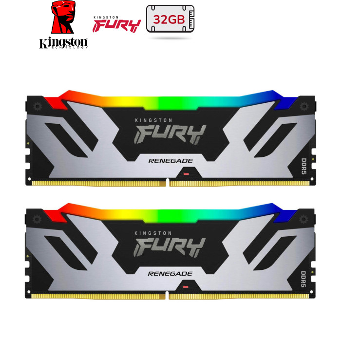 Модуль пам'яті для комп'ютера DDR5 32GB (2x16GB) 7600 MHz Renegade RGB XMP Kingston Fury (ex.HyperX) (KF576C38RSAK2-32)