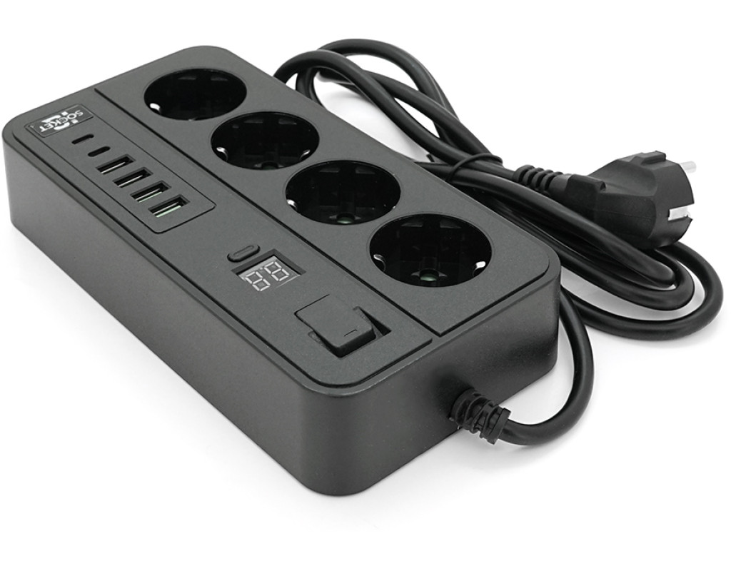 | Мережевий фільтр із захистом від перенапруги G13H, 3000W, 4 Socket + 4 USB 3,2А + 2 Type-C + таймер, 2м, Black, Box |