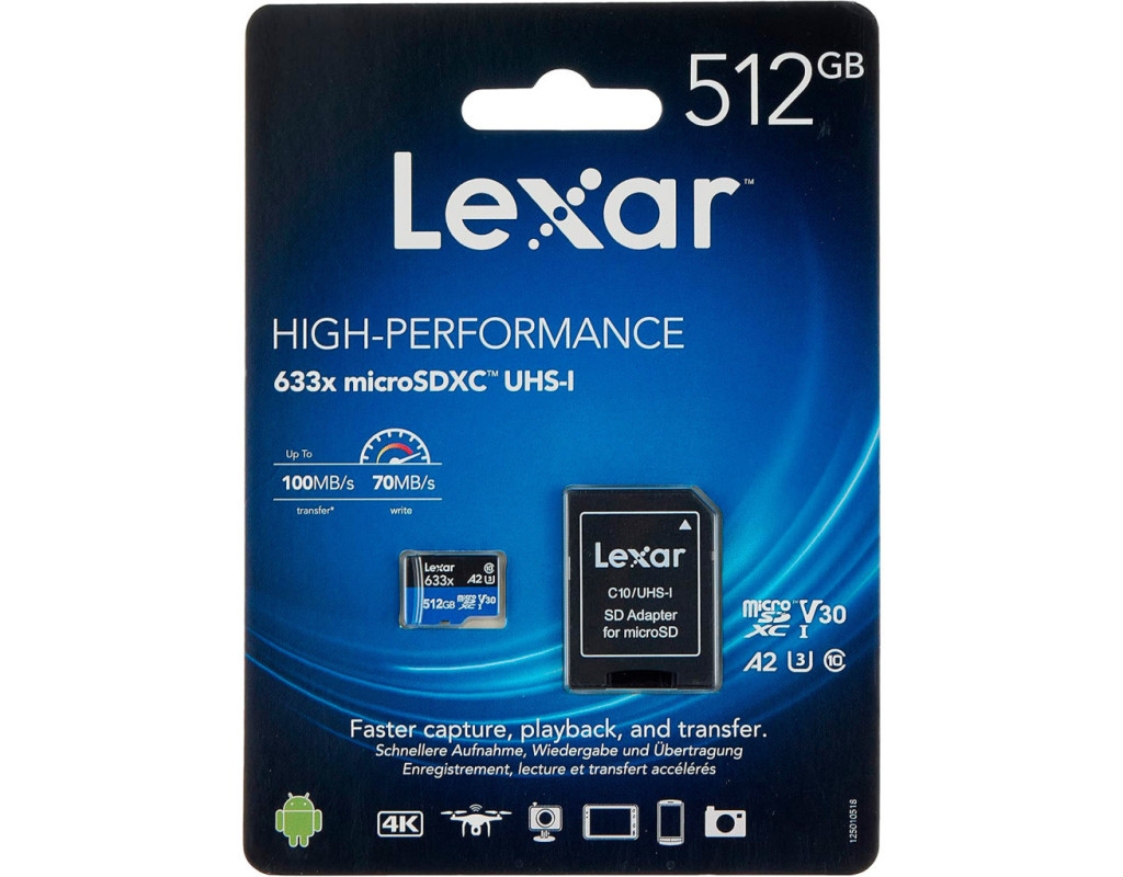 | Карта пам'яті Lexar 512GB microSDXC class 10 UHS-I 633x (LSDMI512BB633A) - надійне рішення для зберігання великого обсягу даних, яке відзначається високою продуктивністю та універсальністю. Завдяки ємності в 512 ГБ ви зможете зберігати тисячі фотографій, годин відео, музику та важливі файли без жодних обмежень. Це робить цю карту пам'яті ідеальним вибором для творчих професіоналів, які потребують великих можливостей зберігання. Завдяки швидкості читання до 100 МБ/с і швидкості запису до 80 МБ/с, ви зможете ефективно передавати файли та записувати відео у високій якості без затримок. Клас карти UHS-I забезпечить швидку та безпечну передачу даних, що робить її сумісною з широким спектром сучасних пристроїв. Додаткові переваги включають водонепроникність, ударостійкість та термостійкість, що гарантує захист ваших даних у будь-яких умовах. Завдяки адаптеру SD ви зможете легко використовувати цю карту пам'яті з пристроями, що підтримують стандарт SD. Lexar 512GB microSDXC - це якість, надійність та бездоганне рішення для всіх ваших потреб у зберіганні даних. Вибираючи Lexar, ви обираєте довговічність та високу продуктивність у кожному використанні. |