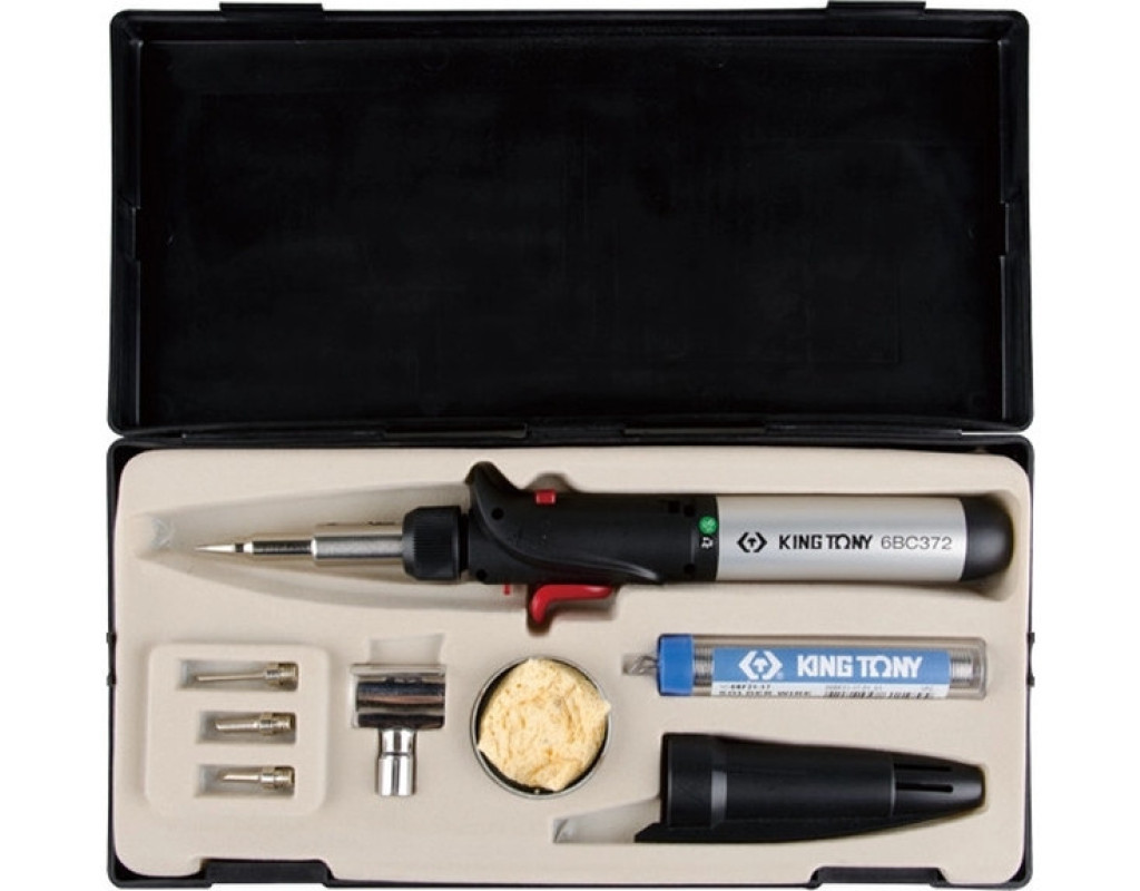 Газовий паяльник KING TONY 150 Вт, з комплектом змінних насадок (6BC3007)