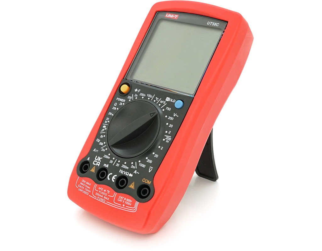 | Мультиметр UNI-T UT58C - це компактний та універсальний вимірювальний пристрій, який призначений для вимірювання різних параметрів електричних кіл. З його допомогою ви зможете проводити точні вимірювання напруги, струму, опору, ємності та температури. Використання: - Перевірка напруги та струму в електричних ланцюгах для забезпечення їх безпечної роботи. - Вимір опору для визначення цілісності проводів та з`єднань. - визначення ємності конденсаторів для оцінки їх стану. - Вимірювання температури моніторингу роботи різних пристроїв. - Проведення тестових випробувань та діагностика електричних систем. Характеристики: - Постійна напруга: до 1000 В - Змінна напруга: до 750 В - Постійний струм: до 20 А - змінний струм: до 20 А - Опір: до 20 МОм - Місткість: до 100 мкФ - Температура: до 1000°C - Розміри: 179 х 88 х 39 мм - Вага: 350 г Мультиметр UNI-T UT58C - надійний та зручний інструмент для професійних електриків, інженерів та електронників, а також для любителів, які дбають про безпеку та ефективність своїх електричних пристроїв. Завдяки своїй багатофункціональності та точності вимірювань, він стане незамінним помічником у вашій роботі та повсякденному житті. |
