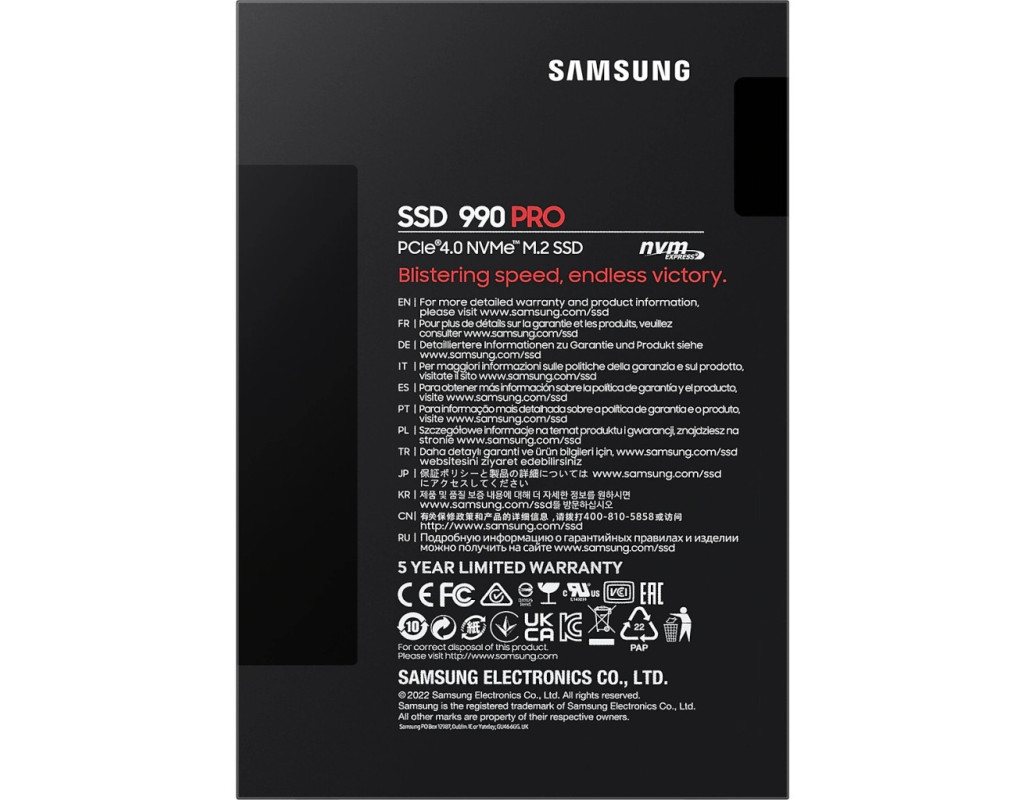 | Накопичувач Samsung 990 PRO 4TB M.2 2280 — це революційний твердотільний накопичувач, що забезпечує виняткову продуктивність та надійність для сучасних потреб користувачів. Завдяки компактному форм-фактору M.2 2280, він легко інтегрується в ультратонкі мобільні пристрої, ноутбуки, ігрові консолі PS5 та настільні комп'ютери. Його інтерфейс підключення PCI Express 4.0 x4 гарантує надзвичайну швидкість обробки даних, збільшуючи продуктивність вашої системи до максимальних можливостей. Оснащений технологією V-NAND 3bit MLC, накопичувач здатний вражати своїми високими швидкостями — зчитування до 7450 МБ/с і запису до 6900 МБ/с. Це означає, що навіть найвимогливіші задачі, такі як запуск "важких" додатків та обробка великих обсягів даних, будуть виконуватись неймовірно швидко і без затримок. Ємність у 4 TB дає достатньо місця для зберігання величезних обсягів інформації, особливо підходячи для роботи з мультимедіа та геймерів, яким завжди потрібно більше простору для своїх ігор. Інноваційна конструкція накопичувача забезпечує не лише високу продуктивність, а й ефективність енергоспоживання, працюючи з максимальною потужністю всього при 3.3 Вт. Це робить його ідеальним вибором для тих, хто цінує тривалий час автономної роботи свого пристрою. Для легкого та безпечного керування своїми даними, Samsung розробив програмне забезпечення Samsung Magician, яке дозволяє контролювати стан накопичувача, отримувати оновлення та захищати дані від стороннього доступу. Легка вага всього 9 г робить Samsung 990 PRO не лише продуктивним, а й зручним у використанні, не додаючи обтяження системі. Завдяки цьому накопичувачу ваш комп’ютер чи ноутбук отримають нове дихання, стаючи не лише швидшими, а й більш надійними. Обирайте Samsung 990 PRO для безкомпромісної якості та швидкості, які змінять ваше уявлення про можливості зберігання даних. |