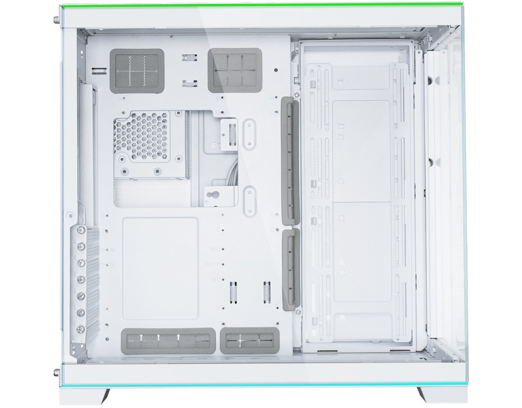 • Дві L-подібні світлові смуги зверху та знизу з відповідними світловими ефектами. • Передні та бічні панелі із загартованого скла зі знімною опорою для безперебійного перегляду компонентів і RGB-освітлення. • 2 регульовані по висоті задній частині вводу/виводу материнської плати та точки кріплення. • Підтримує радіатор до 420 мм зверху та радіатор 360 мм збоку та знизу. • Підтримує 140-мм вентилятори x3 зверху, збоку та знизу. • Зручне розміщення кабелів завдяки більшому простору у другій камері. • Додаткові аксесуари для вертикального монтажу GPU або вертикального монтажу GPU. |