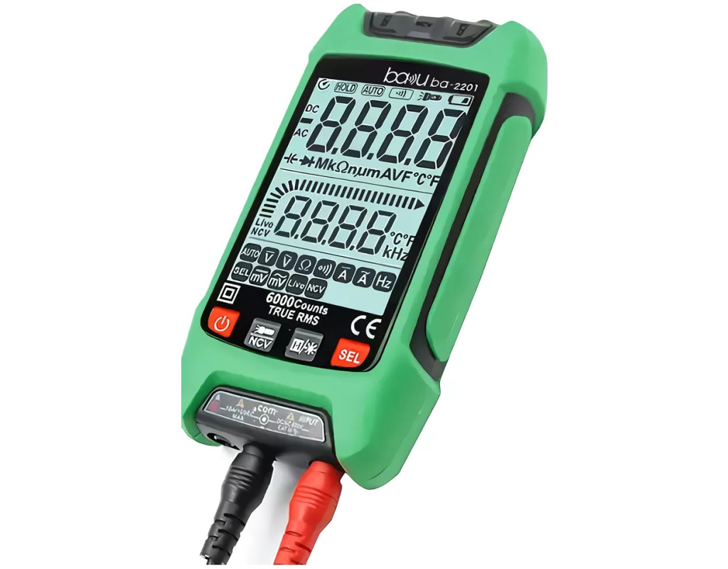 Мультиметр BAKKU Ba-2201 є універсальним приладом для вимірювання напруги (V), сили струму (A) і опору (R). |