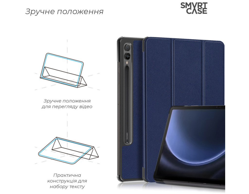 Тип - обкладинка, Сумісність з моделями - Samsung Galaxy Tab S9, Samsung Galaxy Tab S9 FE, Спосіб кріплення - обкладинка, спосіб закриття - магніт, Матеріал - штучна шкіра, синій