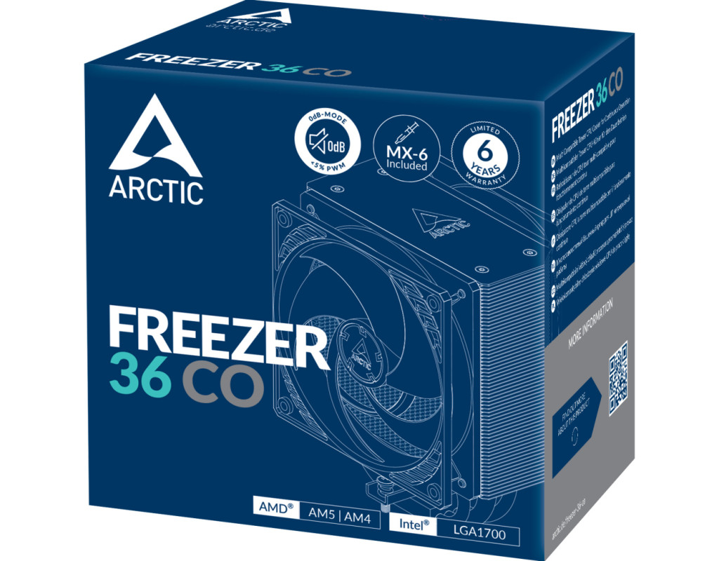 - Перспективна сумісність: Freezer 36 CO сумісний із сокетами Intel і AMD. У майбутньому Intel випустить нові процесори Arrow Lake на сокеті LGA1851. Клієнтам ARCTIC не потрібно турбуватися про те, що для нових процесорів також будуть потрібні нові кулери. Ми гарантуємо повну сумісність. Усі Freezer 36 можна використовувати з новим роз'ємом LGA1851 від Intel без обмежень.