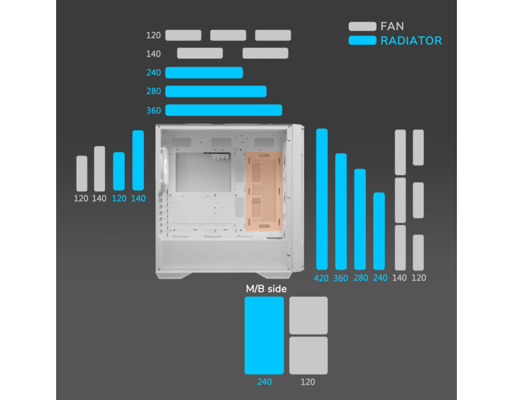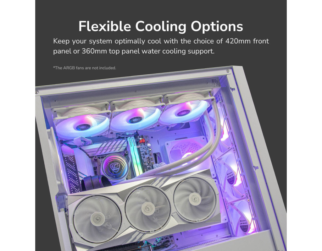 | "Корпус для ПК Cougar UNIFACE White" – це ідеальний вибір для геймерських та високопродуктивних конфігурацій, що ставить у пріоритет не лише естетичний вигляд, але й функціональність та якість. Зробіть крок у майбутнє комп'ютерних технологій зі стильним та надійним корпусом, який забезпечить довготривалу роботу вашої системи на піку продуктивності. Інноваційний дизайн та універсальність Цей білий корпус, виготовлений із міцних матеріалів, вирізняється елегантним дизайном з вікном на бічній панелі, яке дозволяє спостерігати за роботою компонентів і підкреслює естетику вашої системи. Унікальна підтримка різних типорозмірів материнських плат — від Micro-ATX до E-ATX — забезпечує максимум гнучкості для реалізації будь-яких задумів. Навіть якщо ви вирішите розширювати конфігурацію у майбутньому, сім слотів розширення дозволять легко інтегрувати додаткові компоненти. Максимальна продуктивність та охолодження Cougar UNIFACE White не лише виглядає вражаюче, але й передбачає високоякісне охолодження. Завдяки наявності двох встановлених вентиляторів розміром 120 мм та численним додатковим місцям для вентиляторів (на передній, верхній, задній і бічній панелях) цей корпус забезпечує відмінний повітряний потік та ефективне охолодження ваших компонентів навіть під час інтенсивних ігрових сесій. Крім того, підтримка рідинного охолодження зверху та з боків забезпечить додаткову гнучкість для найвибагливіших користувачів. Ефективний захист та легкість обслуговування Багаторівневий пиловий фільтр захищає вашу систему від частинок пилу, що дозволяє підтримувати чистоту всередині корпусу і, як наслідок, подовжити термін служби компонентів. Магнітні та висувні екрани дозволяють легко обслуговувати та очищувати корпус без зайвого клопоту. Потужність і зручність Корпус сумісний з довгими відеокартами до 400 мм, надаючи можливість вертикального встановлення. Це відкриває нові горизонти для творчого підходу до організації компонентів. Максимальна висота процесорного кулера 180 мм і довжина блоку живлення до 210 мм дозволяють без обмежень вибирати охолоджувачі та БЖ. Актуальні можливості підключення На передній панелі розташовані зручні зовнішні роз'єми: USB Type C, два USB 3.0 та роз'єм для мікрофона, що забезпечують сучасні можливості підключення з легкістю доступу до всіх потрібних функцій. Виберіть "Корпус для ПК Cougar UNIFACE White", якщо цінуєте якість, бездоганний стиль і можливість формувати продуктивність вашої системи без компромісів. Це ідеальний варіант для тих, хто хоче отримати максимум від свого ПК. |