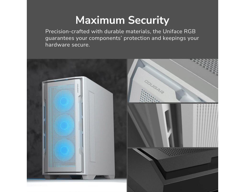 | Корпус для ПК Cougar UNIFACE RGB White — це ідеальне рішення для геймерів, які шукають баланс між елегантністю та функціональністю. Підбір матеріалів найвищої якості та вишуканий білий дизайн з інтегрованим RGB підсвічуванням створюють унікальний образ, який доповнює вашу ігрову станцію та надає їй сучасного вигляду. Універсальна сумісність компонентів робить цей корпус надзвичайно функціональним: він підтримує материнські плати форм-факторів E-ATX, ATX, Micro-ATX, CEB і Mini-ITX. Завдяки великій кількості слотів розширення (7 слотів) і підтримці до двох жорстких дисків 3.5" та двох 2.5" накопичувачів, ви зможете налаштувати систему саме на ваші потреби. Особливу увагу заслуговує система охолодження. Вбудовані чотири 120-мм вентилятори забезпечують ефективний повітряний потік, а завдяки передбаченим місцям для додаткових вентиляторів, таких як 3x12 см на верхній панелі, 2x14 см на бічній панелі і варіацій на фронті, користувач може значно поліпшити вентиляцію. Підтримка рідинного охолодження різного формату дозволяє встановлювати охолоджувальну систему до розміру 420 мм на передній панелі, що дозволить вашій системі залишатися прохолодною навіть під час найінтенсивніших завдань. Окрім цього, чотири пилозахисні фільтри на корпусі не тільки захищають компоненти від шкідливих часток, але й полегшують процес технічного обслуговування та очищення. Магнітні та знімні кришки забезпечують швидкий доступ, не знижуючи рівень захисту. Завдяки універсальному USB Type-C інтерфейсу, підключення до новітніх периферійних пристроїв відбувається без перешкод, що підвищує загальну зручність використання. Додаткові USB 3.0 порти та роз'єм під мікрофон забезпечують швидкий доступ до всього необхідного для повсякденних завдань. Особливу увагу варто звернути на можливість вертикальної установки відеокарти, що дозволяє додати більше естетики до вашої конфігурації. Відкриття бічної панелі з вікном дозволяє милуватись внутрішнім облаштуванням та яскраво підкреслити неперевершене RGB підсвічування. Корпус Cougar UNIFACE RGB White не просто відповідає очікуванням сучасного геймера, але перевершує їх, демонструючи виняткову надійність і можливості адаптації. Максимаlьна довжина відеокарти до 400 мм і висота процесорного кулера до 180 мм дозволяють використовувати найпотужніші компоненти, не турбуючись про їх сумісність. Загалом, UNIFACE RGB White — це не просто корпус; це серце вашої системи, яке забезпечує стабільну і продуктивну роботу, підтримуючи чистоту та естетику вашого робочого місця. Оберіть цей корпус, і ви отримаєте продукт, здатний створити досконалий геймерський досвід. |