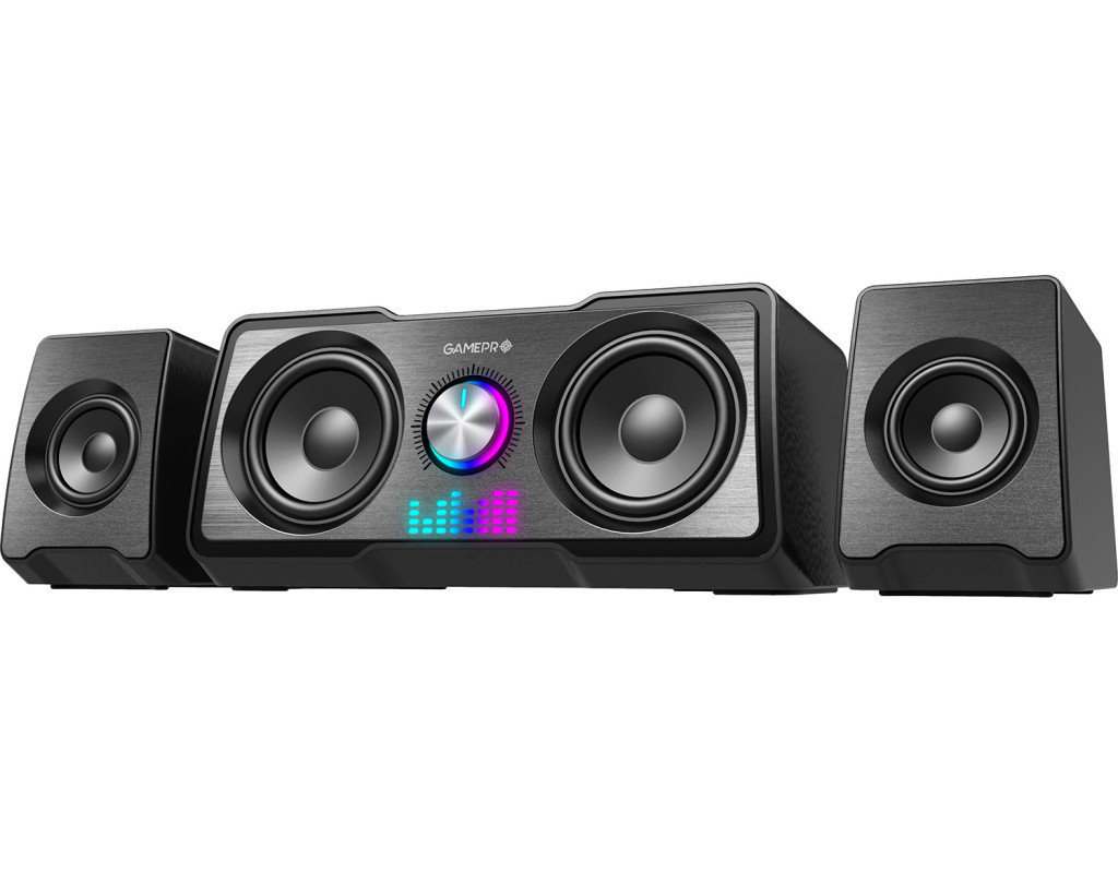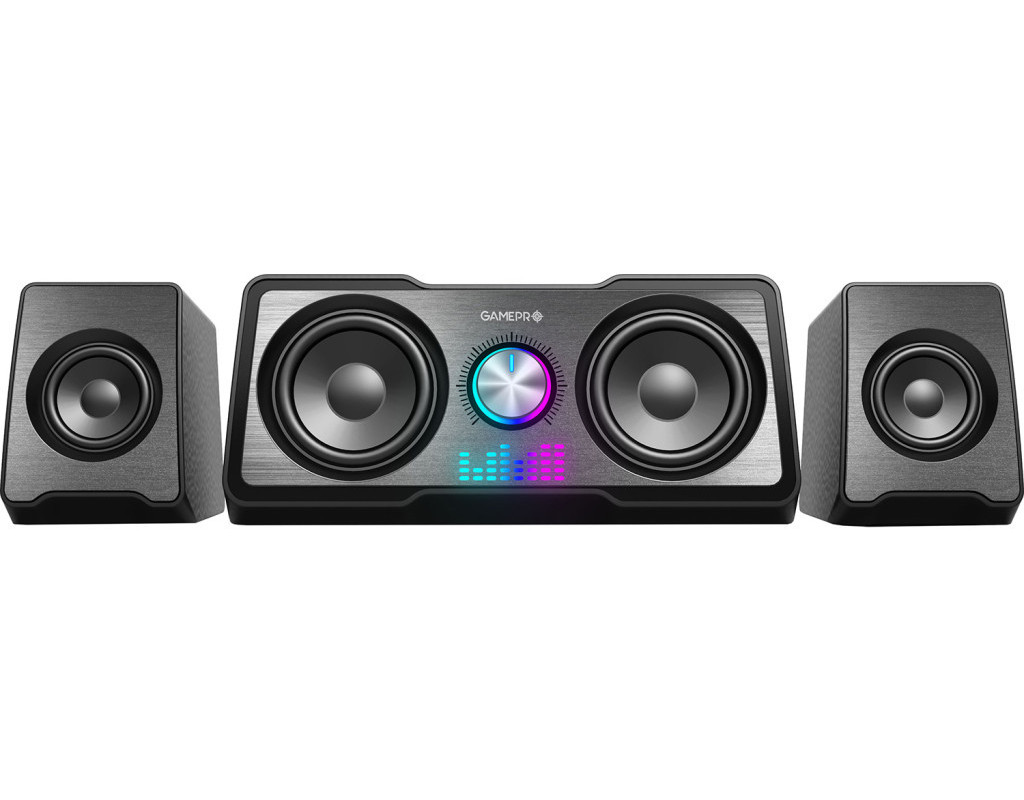Ця акустична система складається з двох колонок та сабвуфера, який має два динаміки з потужністю 5 Вт кожен, що забезпечує більш глибокий та об’ємний звук, особливо в низьких частотах. Також, сабвуфер має 7-колірне підсвічування із ефектом переливання, що може додати стильності та естетичного вигляду до вашого робочого простору. Кожна з колонок має потужність 3 Вт, що забезпечує якісний звук на високих і середніх частотах. Колонки можуть бути розташовані на різних кінцях робочого простору, щоб дати більш просторовий звук. Акустична система підключається до комп'ютера за допомогою кабеля USB для живлення та AUX 3.5 мм для звукового сигналу. Регулятор гучності на сабвуфері дозволяє легко регулювати звук на підходящий для вас рівень гучності. Загалом, ця акустична система є гарним варіантом для тих, хто шукає якісний звук та стильний дизайн для свого робочого простору. |