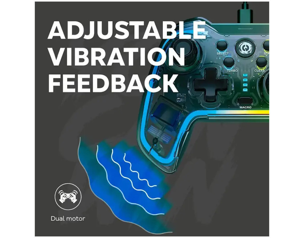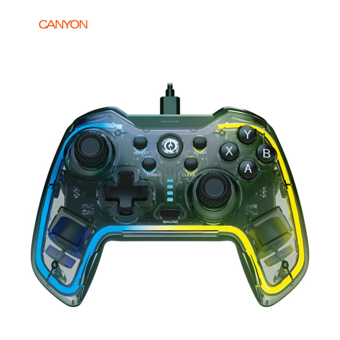 Ready player one! Підготуйтеся до гри з новим геймпадом Canyon Brighter GP-02. Він створений для забезпечення максимального зчеплення та максимального комфорту, гарантуючи, що ви зможете по-справжньому насолодитися ігровими сеансами. Модель Canyon Brighter із кришталево прозорим корпусом виправдовує свою назву. У поєднанні з RGB-підсвічуванням це має дивовижний вигляд! Пристрій підтримує режими X-входу та D-входу та має дванадцять програмованих кнопок, що дозволяють налаштовувати та покращувати ігровий процес. Ми також додали двигуни з подвійною вібрацією для правильного тактильного зворотного зв'язку. |