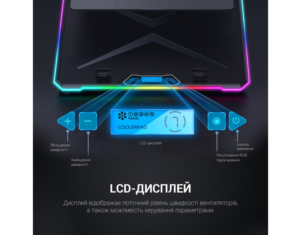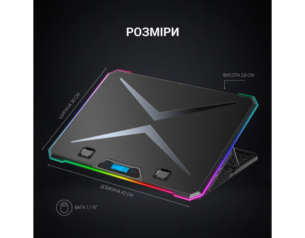 Уявіть собі, що ви працюєте над важливим проєктом, і ваш ноутбук вирішує взяти вас під власний контроль, нагадуючи про свою гарячість. Саме тут на допомогу приходить охолоджуюча підставка GamePro CP940, яка перетворює вашу робочу область в затишний куточок продуктивності. Завдяки розмірам 420х300х28 мм, вона ідеально підходить для ноутбуків із діагоналлю десплея 12-17 дюймів, створюючи комфортне середовище для роботи. Її секрет - у великих вентиляторах розміром 100х100х15 мм, які працюють на швидкості 1350 обертів в хвилину, ефективно відводячи надлишкове тепло. Але це ще не все. Малими вентиляторами розміром 70х70х15 мм, які працюють на вражаючій швидкості 2400 обертів в хвилину, забезпечено додатковий рівень охолодження. Тепер ваш ноутбук може працювати на повну потужність, не перегріваючись. LCD-дисплей та 10 режимів RGB-підсвічування додають елемент стилю і індивідуальності до вашого робочого простору. Завдяки 2 USB-роз'ємам вам не потрібно жертвувати підключеними пристроями. Зручність та гнучкість - ось що відрізняє підставку. З 9 рівнями налаштування кута нахилу ви можете забезпечити собі ідеальне положення для роботи. Виготовлена з високоякісного АБС-пластику та залізної сітки, підставка не тільки функціональна, але й стійка до довготривалого використання. І навіть при всій своїй потужності, вага лише 1.1 кг, що забезпечуює легкість переносу, та не відключає вас від вашої роботи. Насолоджуйтесь своєю продуктивністю без обмежень з охолоджуючою підставкою для ноутбука GamePro CP940! |
