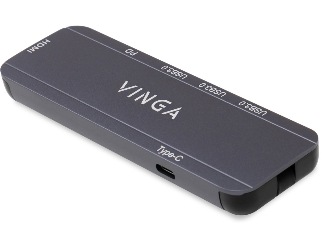 Концентратор Vinga USB-C 3.1 to HDMI+3xUSB3.0+PD100W+USB-C foldable cable (VHYC6FC)