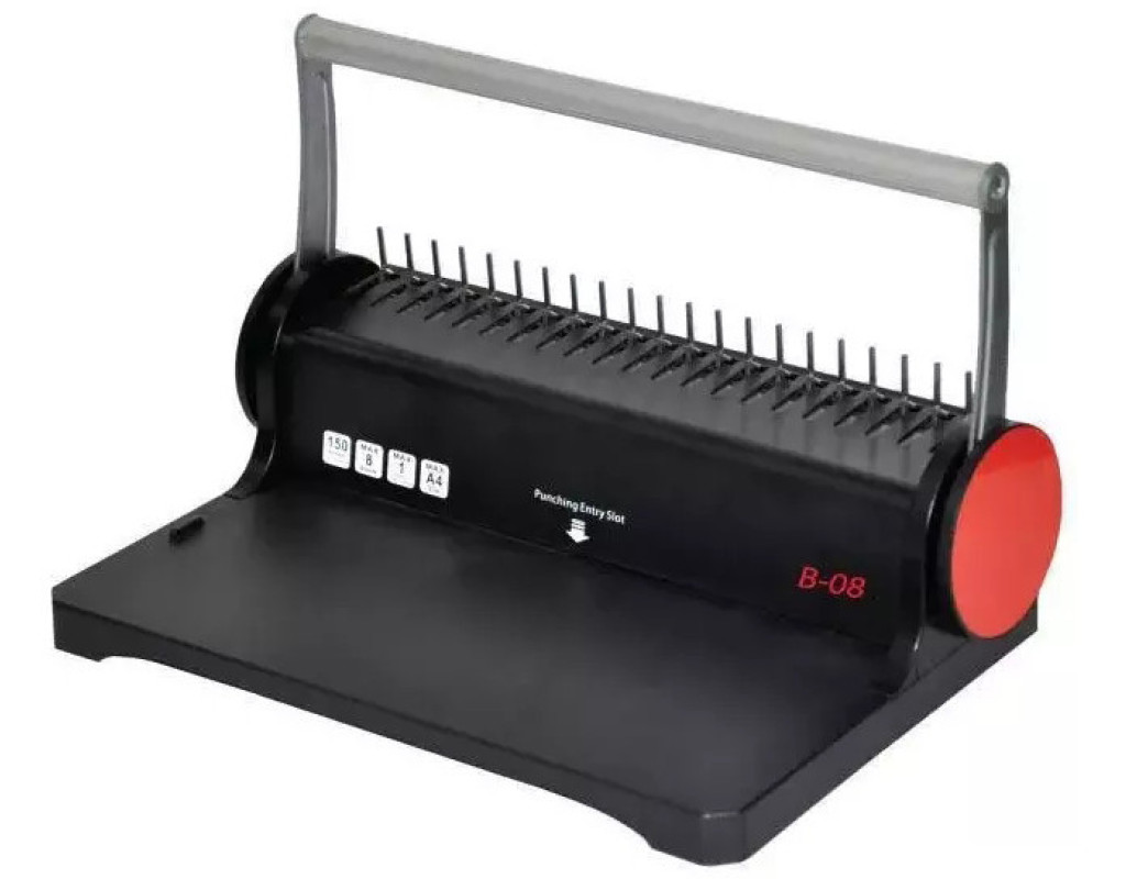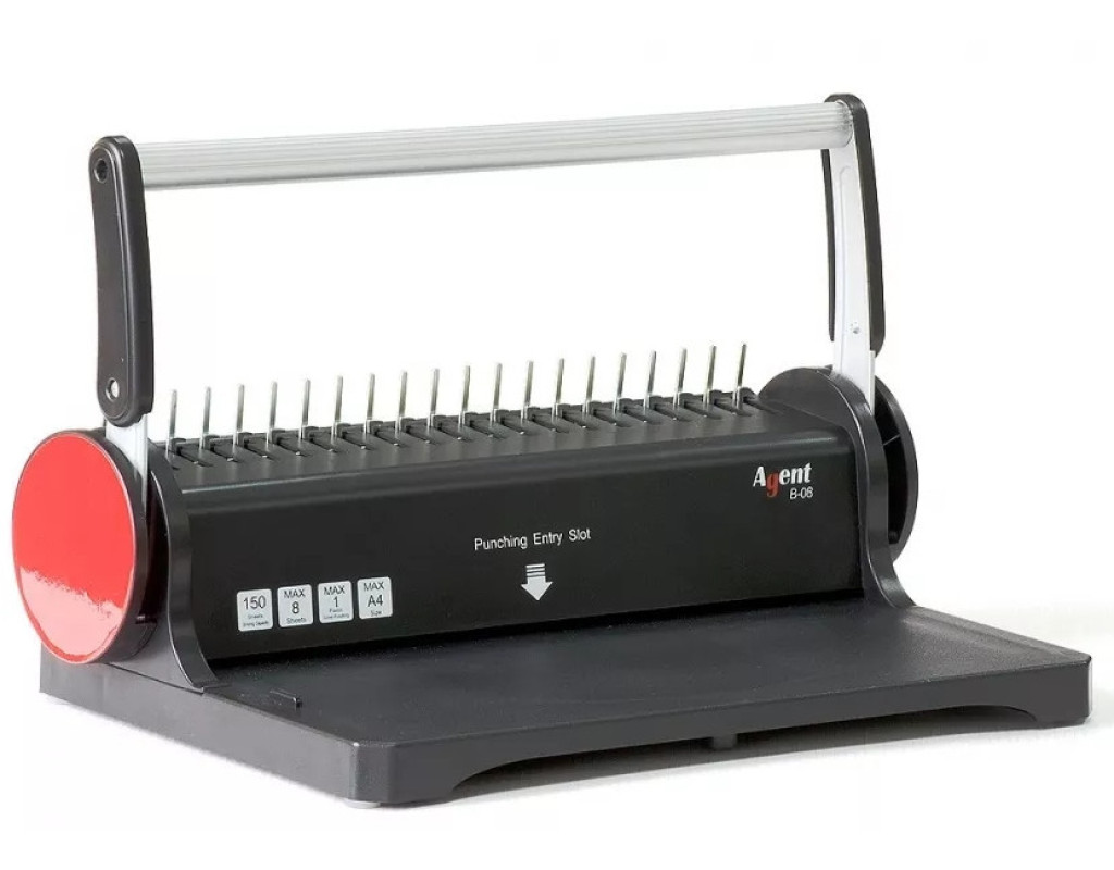 B-08 — це легкий, компактний, простий у використанні малобюджетний біндер для офісу від Agent. Модель одночасно виконує дві функції: Зшиває брошури пластиковою пружиною, а також встановлює 4-е отвори для архівування в швидкозшивач. 2-в-1: брошюровщик + дирокол на 4-е отвори. Особливості: