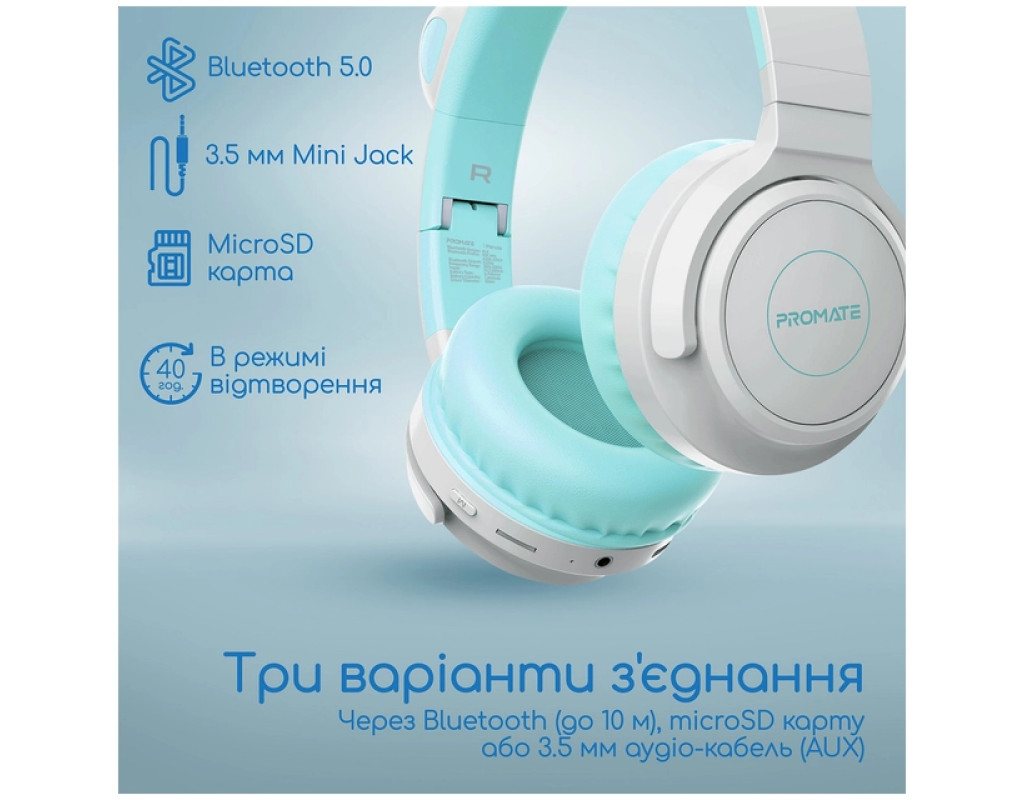 Panda - флагманська модель дитячих бездротових навушників від компанії Promate. Відмінні звукові характеристики, підвищений запас міцності та все це в дизайні Kawaii. Особливості: