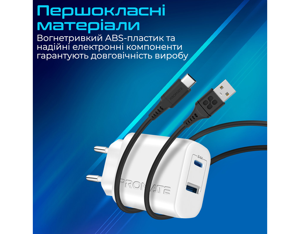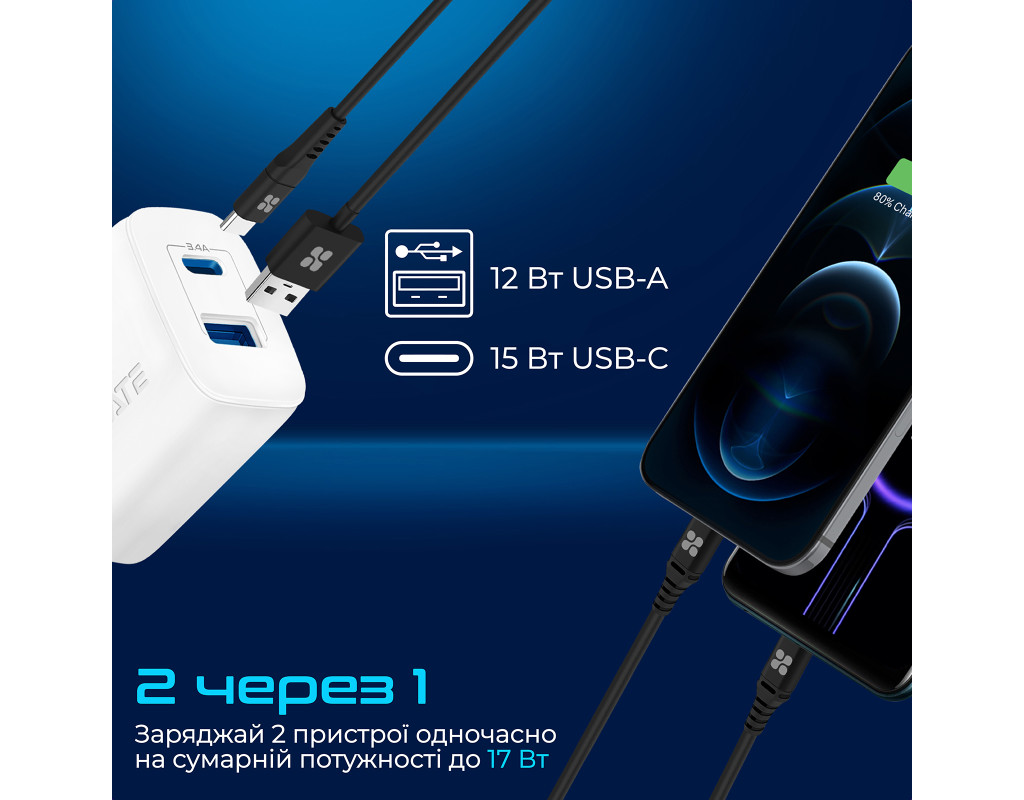 | BiPlug-2 - удосконалений варіант популярної моделі BiPlug від Promate. Сумарна потужність зарядного пристрою збільшена до 17 Вт і додано сучаснмй USB-C роз’єм, при цьому розмір зарядки став ще компактніше.