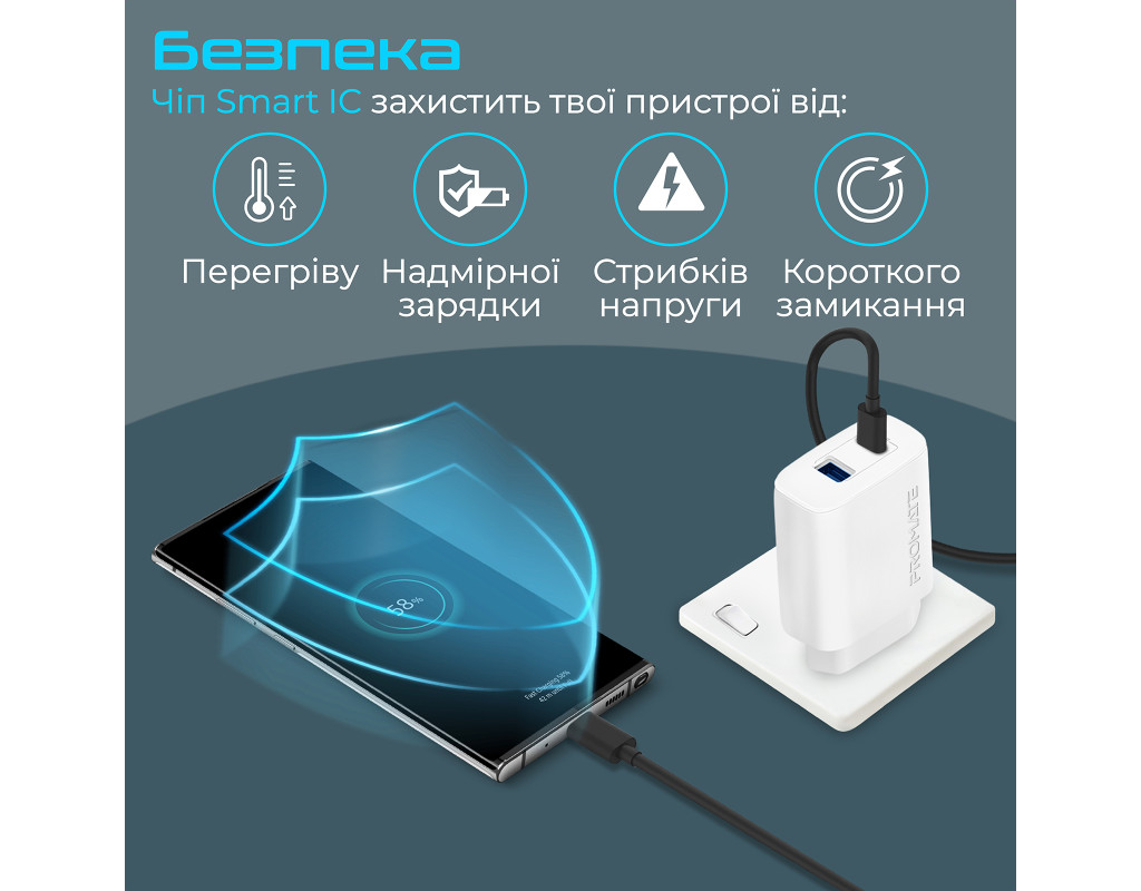 Особливості: 2 через 1: Заряджайте 2 пристрої одночасно на сумарній потужності до 17 Вт. USB-C порт: Забезпечує блискавичну зарядку на потужності до 15 Вт. InteliCharge 2.4А USB-А порт: Гарантує максимальну швидкість заряджання для пристроїв, не обладнаних технологією Quick Charge 3.0 (12 Вт макс). Технологія адаптивної зарядки: Автоматично підбере оптимальний та безпечний рівень потужності залежно від твого пристрою. Безпека: Вбудований чіп Smart IC захистить підключені девайси від перегріву, стрибків напруги, короткого замикання та надмірної зарядки. Компактний розмір: З габаритами 25x35x50 мм не займає багато місця і не заважає іншим мережевим пристроям підключеним поруч. Першокласні матеріали: Вогнетривкий ABS-пластик гарантує довговічність виробу. |