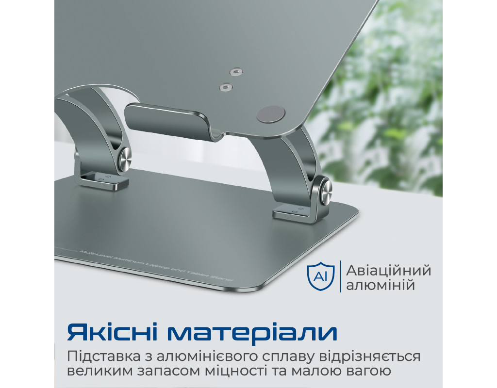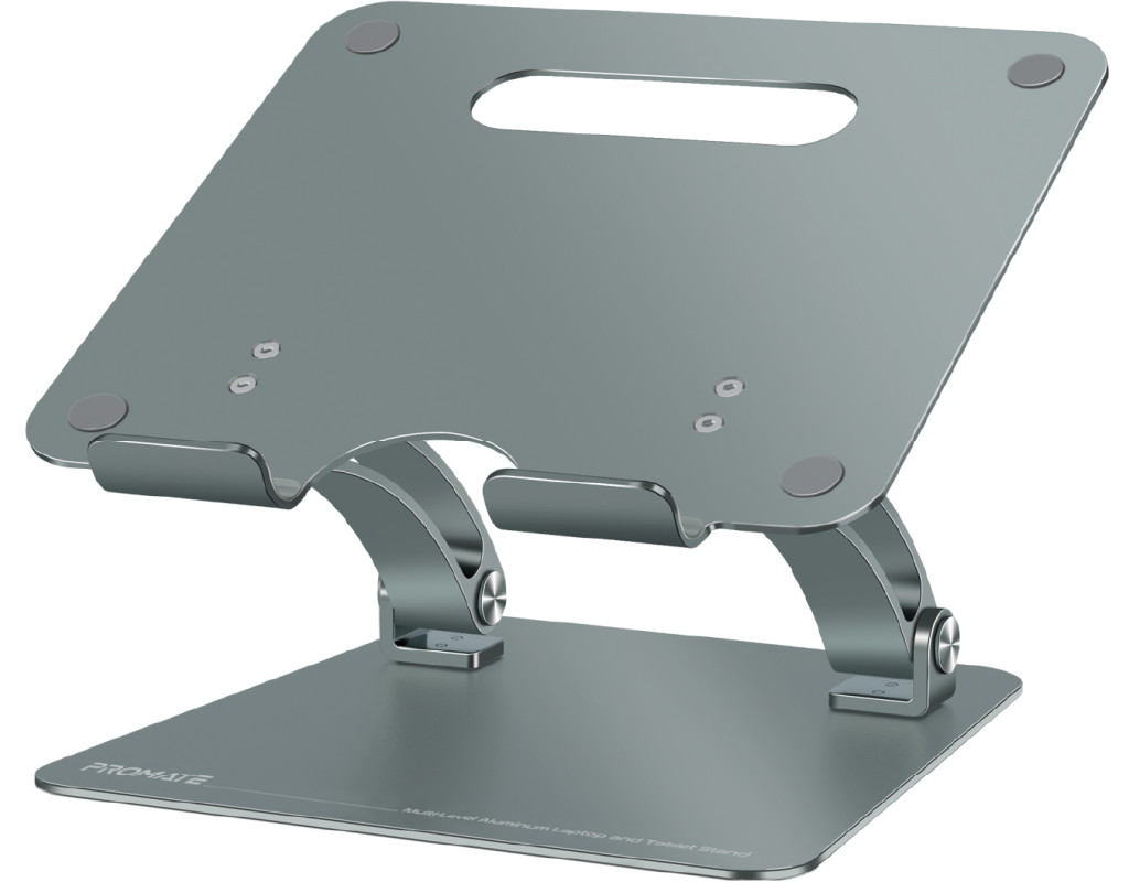 | Ергономічна алюмінієва підставка для ноутбука ідеально поєднує в собі функціональність і елегантний зовнішній вигляд, завдяки чому зробить робоче місце більш комфортним і зручним. DeskMate-7 від Promate створена для твоєї зручності!