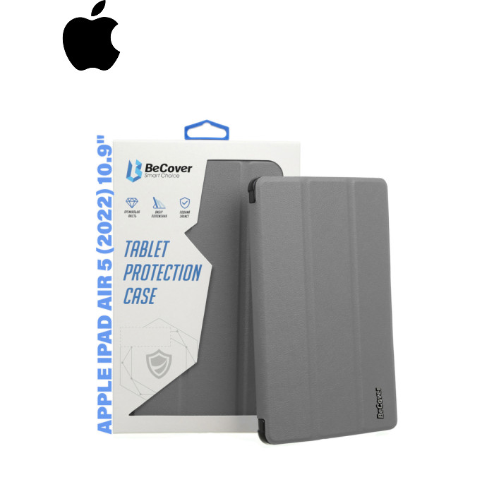 Тип - обкладинка, Сумісність з моделями - Apple iPad Air 5, діагональ - 10.9, Спосіб кріплення - обкладинка, спосіб закриття - магніт, Матеріал - термополиуретан, штучна шкіра, сірий