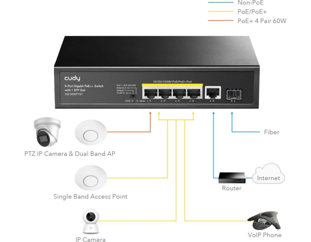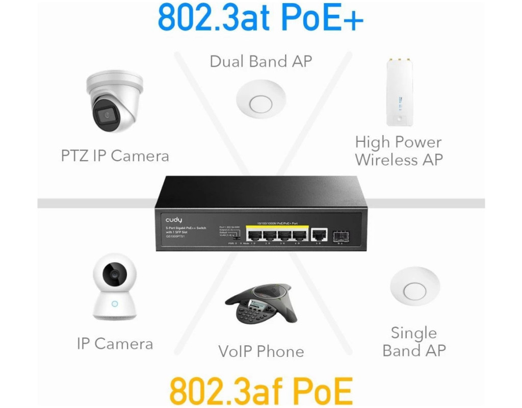| Комутатор мережевий Cudy GS1005PTS1 - це високоякісне рішення для побудови надійних мереж середнього масштабу. Завдяки 4 PoE+ портам, які підтримують стандарт живлення PoE IEEE802.3af/at, він легко забезпечить живлення для таких пристроїв, як IP-камери, точки доступу та IP-телефони, навіть у місцях без доступу до електромережі. Цей некерований гігабітний комутатор забезпечує просте розширення мережі, не потребуючи попередніх налаштувань, завдяки технології Plug & Play. Загальна потужність PoE становить 120 Вт, з можливістю подавати до 30 Вт на кожен з чотирьох портів, що дозволяє підключати більше пристроїв без додаткових витрат на прокладку кабелів живлення. Cudy GS1005PTS1 володіє функцією Watchdog, яка автоматично діагностує та перезавантажує підключений пристрій у разі його зависання, тим самим зберігаючи стабільність мережі. Завдяки металевому корпусу, цей комутатор не лише забезпечує чудове розсіювання тепла, але й має довгий термін служби, працюючи безшумно, що робить його ідеальним для офісів, готелів та бізнес-центрів. Підтримка різних режимів роботи за допомогою DIP-перемикача дозволяє ефективно керувати підключеннями. Режими VLAN, Default та Extend допомагають забезпечити безпечну передачу даних та збільшити дальність обслуговування пристроїв до 250 м. Універсальність встановлення дозволяє використовувати комутатор як на столі, так і в стійку. Обирайте Cudy GS1005PTS1, щоб ваша мережа завжди залишалася стабільною та надійною. |