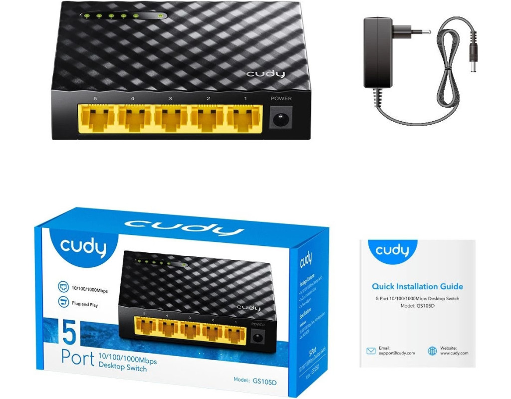 | Мережевий некерований гігабітний комутатор Cudy GS105D забезпечує надійну та швидку комунікацію завдяки своїм п'яти портам 10/100/1000M. Використання мережевих стандартів IEEE 802.3, IEEE 802.3u, IEEE 802.3x, IEEE 802.3ab та IEEE 802.3z гарантує високу сумісність з різними мережевими пристроями. Це ідеальний вибір для тих, хто прагне розширити мережу в домашніх умовах, офісах, навчальних закладах та інших установах. Встановлення пристрою напрочуд просте завдяки функції Plug & Play, яка не потребує попередніх налаштувань. Пластиковий корпус та безшумна конструкція роблять його зручним для настільного розміщення. Енергоефективна технологія дозволяє комутатору регулювати споживання енергії відповідно до стану з'єднання та довжини кабелю, допомагаючи заощадити до 85% електроенергії. Комутатор оснащений функцією Auto MDI/MDIX, що дозволяє працювати з різними типами кабелів без необхідності використання спеціальних перемикачів. Додатково функція автоузгодження на кожному порті автоматично визначає оптимальну швидкість з'єднання, забезпечуючи стабільність та швидкість вашої мережі. Неблокуюча архітектура пристрою підтримує максимальну швидкість передачі даних, що дозволяє уникнути затримок під час передачі великих файлів або потокових відео. Крім цього, панель індикації дозволяє зручно моніторити робочий стан комутатора, забезпечуючи додаткову зручність і контроль. Купуючи Cudy GS105D, ви отримуєте не лише технологічно досконалий пристрій, але й надійного партнера для вашої мережі. Подаруйте вашому дому або офісу можливість працювати на повну потужність завдяки цьому надзвичайно ефективному та простому у використанні рішенню. Блок живлення включений в комплект, що робить цей комутатор готовим до роботи в будь-який момент. |