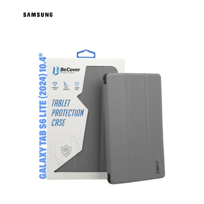 Тип - обкладинка, Сумісність з моделями - Samsung Galaxy Tab S6 Lite (2024), діагональ - 10.4, Спосіб кріплення - обкладинка, спосіб закриття - магніт, Матеріал - термополіуретан, штучна шкіра, сірий