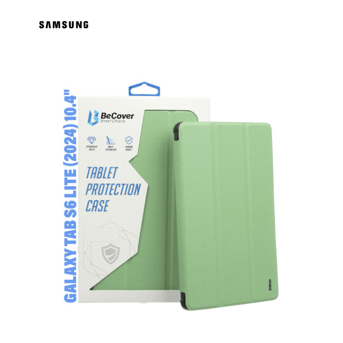 Тип - обкладинка, Сумісність з моделями - Samsung Galaxy Tab S6 Lite (2024), діагональ - 10.4, Спосіб кріплення - обкладинка, спосіб закриття - магніт, Матеріал - термополіуретан, штучна шкіра, зелений