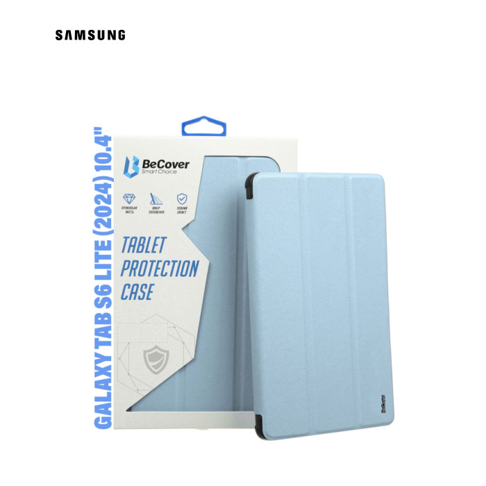 Тип - обкладинка, Сумісність з моделями - Samsung Galaxy Tab S6 Lite (2024), діагональ - 10.4, Спосіб кріплення - обкладинка, спосіб закриття - магніт, Матеріал - термополіуретан, штучна шкіра, блакитний