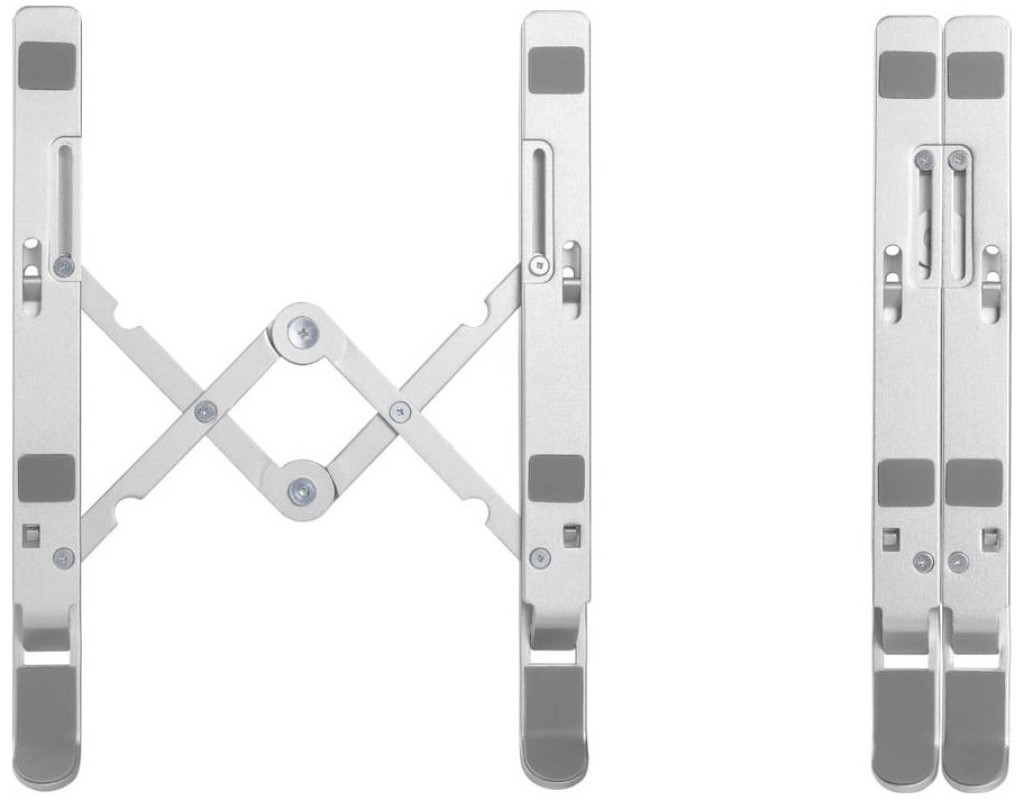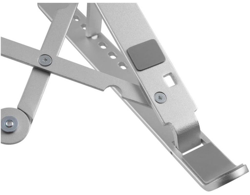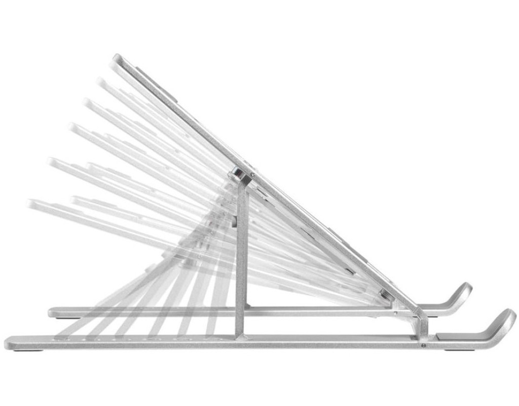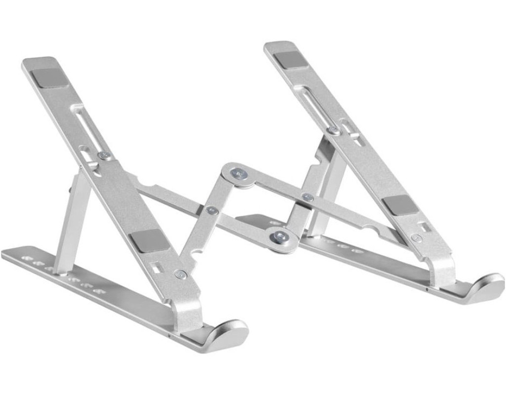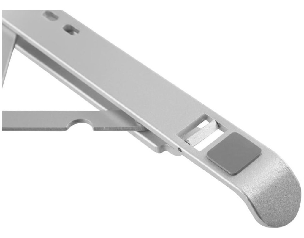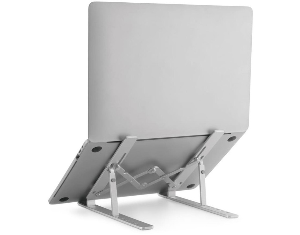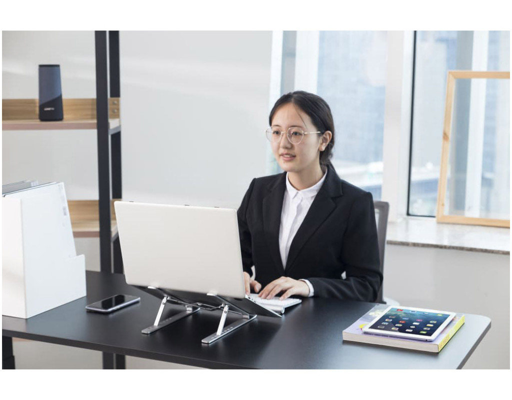 Підставка для ноутбука має 7 рівнів регулювання висоти, що дозволяє встановити ноутбук на ідеальну висоту для роботи. Допомагає захистити очі та покращити поставу тіла під час тривалої роботи за ноутбуком. Трикутна конструкція з високоміцного алюмінієвого сплаву має сильну підтримку. Ця підставка для ноутбука витримує вагу до 5 кг, підходить майже для всіх ноутбуків з діагоналлю від 11" до 15". Вона легка і може бути легко складена в 9,4-дюймову смужку. Її зручно брати з собою у відрядження або куди завгодно. Переваги: