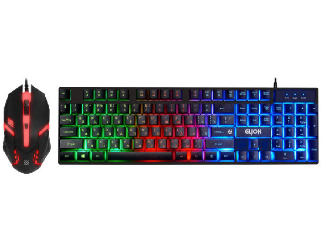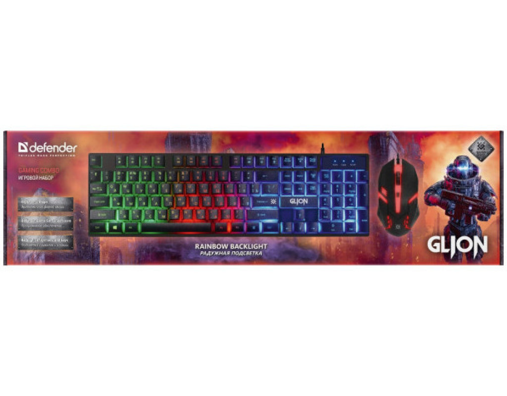 Defender Glion C-123 UA - ігровий набір для геймерів початківців, який стане надійним компаньйоном у світі комп’ютерних розваг. Набір складається з ударостійкої клавіатури та зручної мишки. RGB підсвічування клавіатури можна вмикати і вимикати, використовуючи кнопку Scroll Lock. Клавіатура оснащена вбудованим редактором макросів, який дозволяє записувати і редагувати послідовності до 52 команд. "Гарячі" клавіші надають швидкий доступ до офісних, мультимедійних програм та мережі інтернет. Водостійка конструкція клавіатури убезпечує від потрапляння вологи на внутрішній механізм, а висувні ніжки дозволяють обрати оптимальний кут нахилу. Комфортна в користуванні мишка з роздільною здатністю до 1600 DPI забезпечує швидке і точне відстеження рухів. Мишка однаково добре підходить для користування правою та лівою рукою. Форма мишки сприяє природному розташуванню руки та зап’ястя, що запобігатиме втомі під час тривалої роботи. Набір Defender Glion C-123 UA підключається до ПК через USB роз’єми. Він сумісний з ноутбуками та ПК з операційними системами Windows 2000/XP/Vista/7/8/10 та вище, Mac OS X10. |