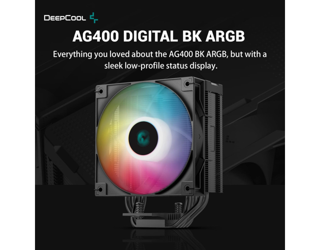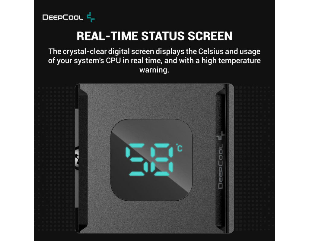 Настала ера цифрових повітряних кулерів, і DeepCool хоче її популяризувати. Усе, що ви любили в AG400 ARGB, але з витонченим низькопрофільним дисплеєм стану. Екран стану в реальному часіНа кришталево чистому цифровому екрані в режимі реального часу відображаються температура за Цельсієм і рівень використання процесора вашої системи, а також попередження про високу температуру. Керування дисплеєм здійснюється за допомогою простого застосунку, для якого потрібен тільки роз'єм USB 2.0. Висока продуктивністьПобудований із матеріалів найвищої якості, з чотирма вдосконаленими мідними тепловими трубками, холодною пластиною Heatpipes Direct Touch, радіатором-вежею з чорним покриттям і одним безшумним вентилятором на гідропідшипниках, він створює потужну формулу високопродуктивного охолодження та надає цифрові можливості для геймерів. Холодний, тихий, потужний і ARGB!Потужний ARGB PWM-вентилятор із чудовими гідропідшипниками забезпечує низький рівень шуму без втрати потужності охолодження для ідеального балансу. Просте та надійне встановленняСуцільнометалевий монтажний кронштейн забезпечує легке встановлення, гарантуючи правильний контакт і рівний тиск на платформах Intel і AMD. |