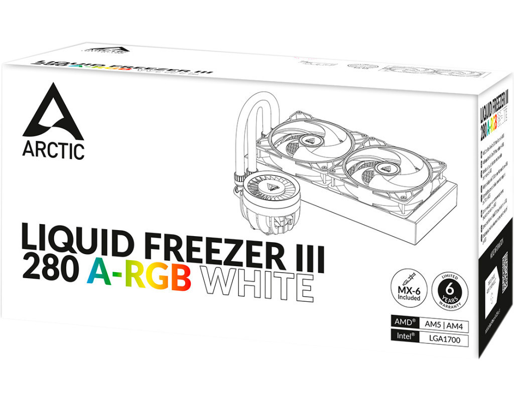 Liquid Freezer III готовий до негайного використання завдяки встановленим вентиляторам радіатора в push-конфігурації. Кабелі вентиляторів вбудовані в оболонку шлангів, тому до материнської плати потрібно підключити лише один кабель. З MX-6 термокомпозитом, включеним у постачання, у вас є все необхідне для швидкої та простої установки. |
