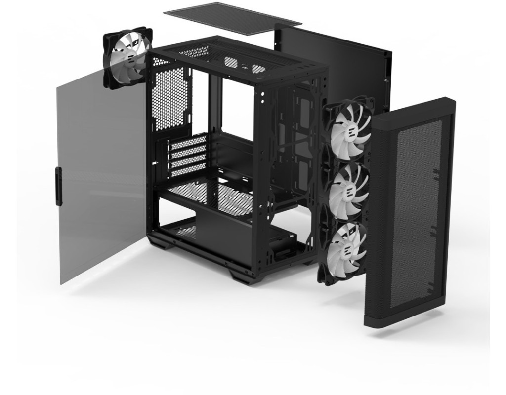| Корпус для ПК Zalman M4BLACK - ідеальний вибір для сучасних геймерів та ентузіастів, які прагнуть збалансує довершеність дизайну і функціональність. Цей геймерський корпус має типорозмір Minitower, що дозволяє не лише зберегти простір на вашому робочому місці, але й забезпечити повну сумісність з популярними материнськими платами формату Mini-ITX і Micro-ATX. Конструкція та матеріали цього корпусу вражають своєю якістю. Виконаний з міцної сталі з чорним покриттям, корпус характеризується високою стійкістю до механічних впливів. Передня панель зі стильною металевою сіткою не лише додає естетичної привабливості, а й значно покращує вентиляцію всередині корпусу. Бічна панель із загартованого скла зі зручним кріпленням на петлях додає можливість милуватися компонентами зсередини під час ігрового процесу. Спроектований з акцентом на оптимізоване охолодження, корпус Zalman M4BLACK укомплектовано чотирма 120 мм ARGB вентиляторами. Це забезпечує відмінний потік повітря і стильний ефект підсвічування, контрольований через спеціальну кнопку управління підсвічуванням на верхній панелі введення. Додатково, корпус підтримує системи рідинного охолодження різного формату (на верхній, передній та задній панелях). Бокові панелі Zalman M4BLACK облаштовані пиловими фільтрами, що захищають систему від пилу, продовжуючи термін її експлуатації. Верхній магнітний і нижній стандартний фільтри забезпечують легке очищення та обслуговування. Внутрішні відсіки корпусу дозволяють встановити до 4 жорстких дисків або SSD, з використанням безгвинтового кріплення для максимального комфорту монтажу. Конструкція має 4 слоти розширення, забезпечуючи можливість додавання нових компонентів. Блок живлення розміщується в нижній частині корпусу, що сприяє зниженню центра ваги, разом із прогумованими ніжками забезпечуючи стабільність та зменшення вібрацій. Довжина блоку живлення може досягати 140 мм, що робить корпус сумісним з численними сучасними моделями. Однією з унікальних рис Zalman M4BLACK є можливість встановлення довгих відеокарт до 320 мм та кулерів заввишки до 157 мм, що відкриває широкий спектр вибору для геймерів та професіоналів. На верхній панелі корпуса розміщені зручні зовнішні роз'єми: 2 x USB 3.0, 1 x USB 2.0, а також аудіороз'єми, забезпечуючи швидкий доступ до всіх необхідних підключень і пристроїв. Інтерфейс USB 3.0 прискорює передачу даних у 10 разів порівняно з USB 2.0. <Корпус Zalman M4BLACK> - це не лише функціональність, а й стиль. Його елегантний чорний колір, доповнений сучасним дизайном з підсвічуванням та великим вікном на бічній панелі, робить його прекрасним вибором для тих, хто цінує як продуктивність, так і зовнішню привабливість своєї ігрової системи. Zalman M4BLACK - це дійсно влучний вибір для тих, хто прагне зібрати інноваційний і надійний ПК, що відповідатиме всім сучасним вимогам. |