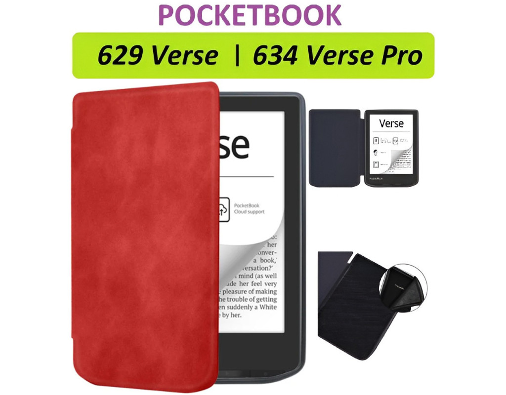 Колір - червоний, штучна шкіра, Сумісність - PocketBook 629 Verse, PocketBook 634 Verse Pro, обкладинка, Спосіб кріплення - обкладинка