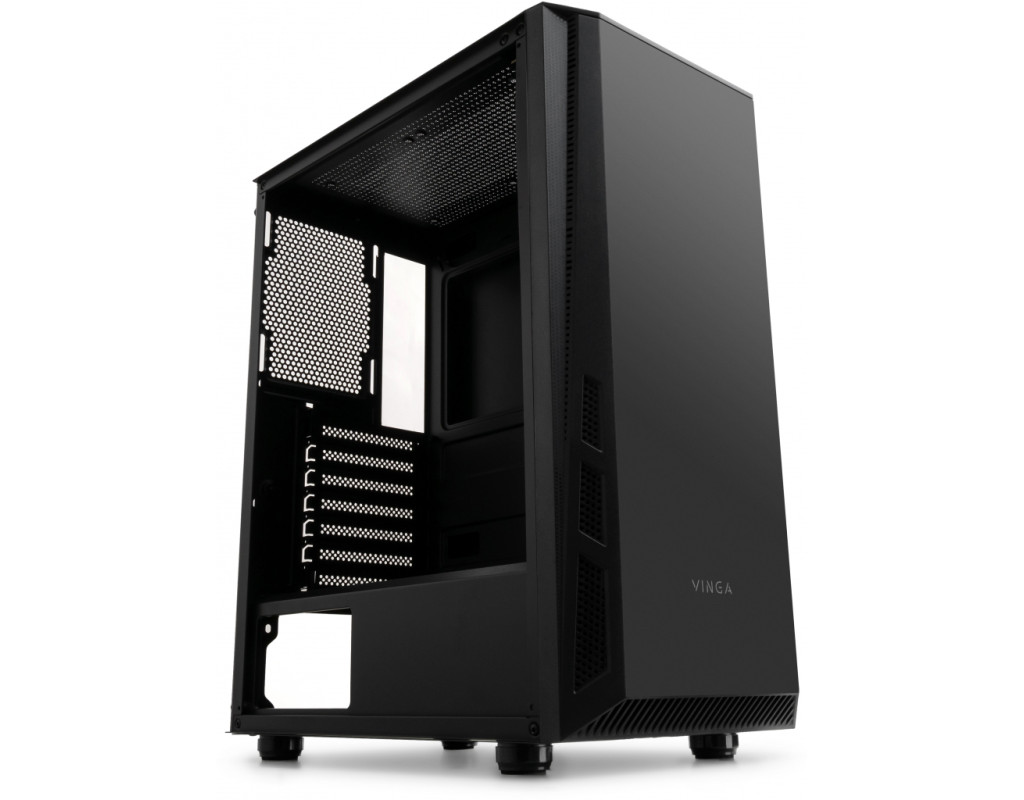 Класичний стильний корпус Vinga Vision II без витребеньок, але і без непотрібних деталей - чорний матовий колір, строгі лінії - це відрізняє корпус для збору мультимедійного комп'ютера від Vinga в цій моделі. Корпус працює практично безшумно - є підтримка систем рідинного охолодження, а також можливість встановити шість додаткових вентиляторів - три спереду, два зверху і один ззаду, всі - діаметром по 12 см. Є внутрішні відсіки два на 2.5 дюйма і три під 3.5 дюйма. Є сім слотів для розширення. Роз'ємів для підключення кілька - два для USB 2.0, один для USB 3.0 і для аудіо. Обмеження для внутрішніх деталей досить стандартні - це: