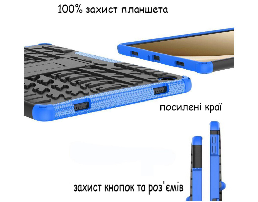 Тип - накладка, Сумісність з моделями - Samsung Galaxy Tab A9 Plus, діагональ - 11, Спосіб кріплення - рамка-тримач, Матеріал - полікарбонат, термополиуретан, синій